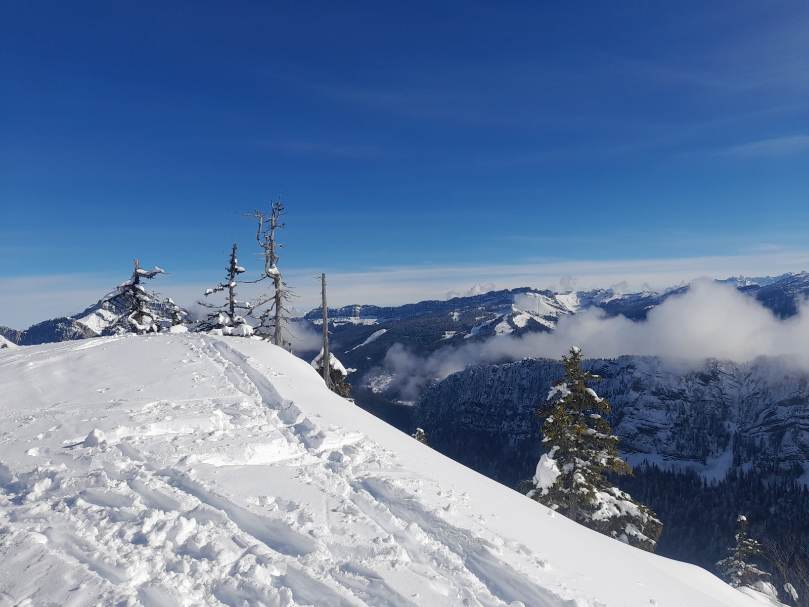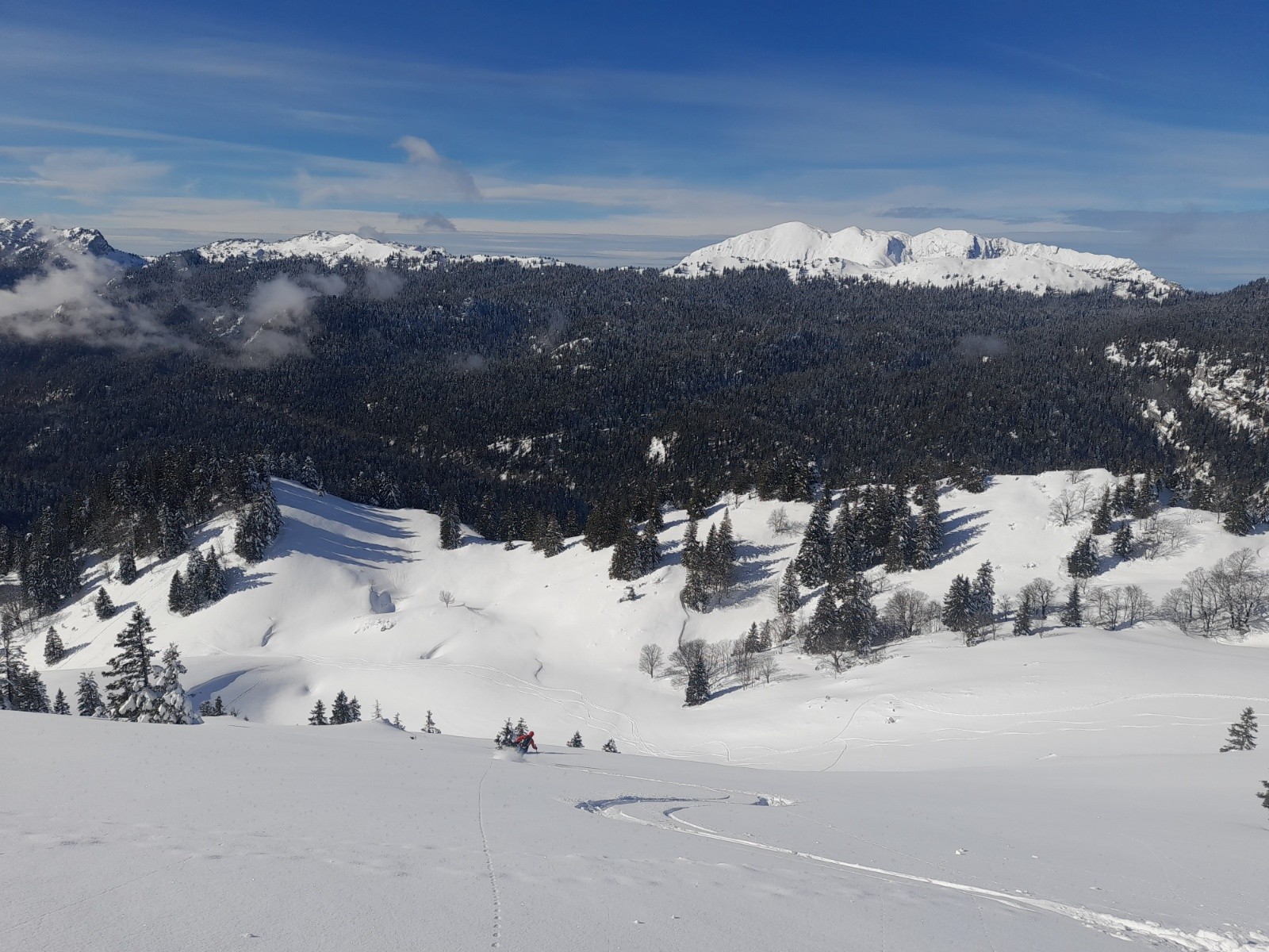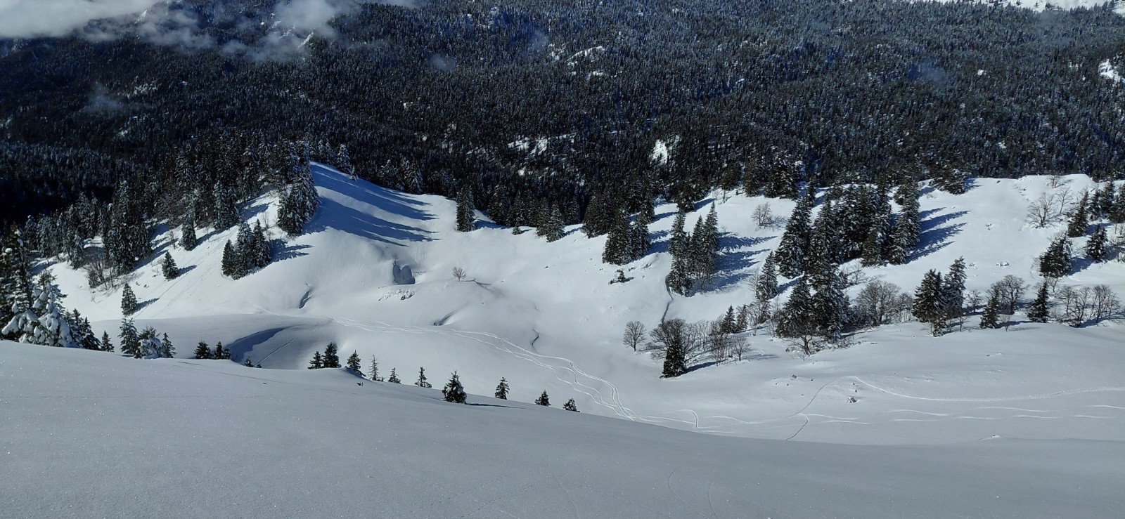 Conditions pour le ski : Globalement bonne! Descente O et NO en poudre, haut de Chamechine 5* et vierge de toute trace. Quelques passages croutés, notamment le bas de Pré Bâtard).