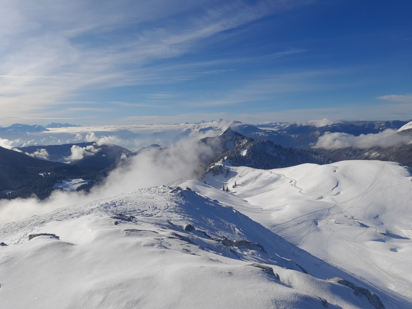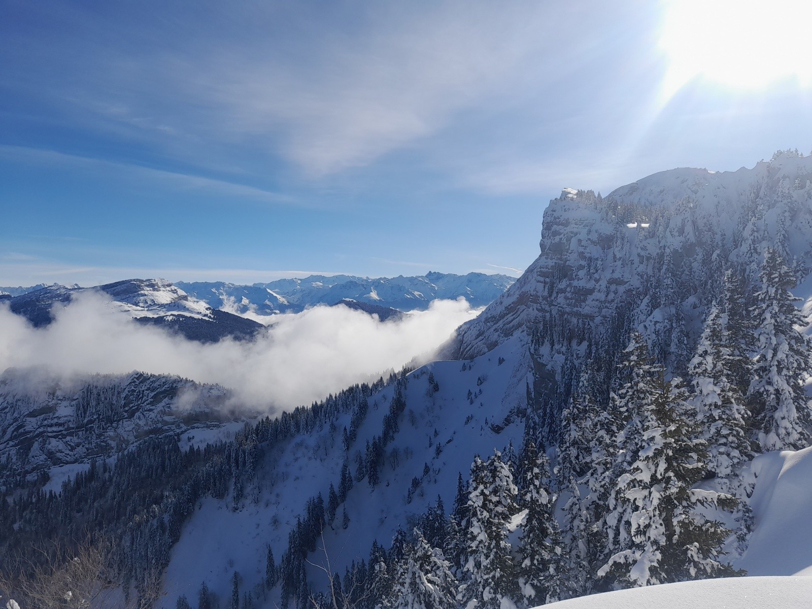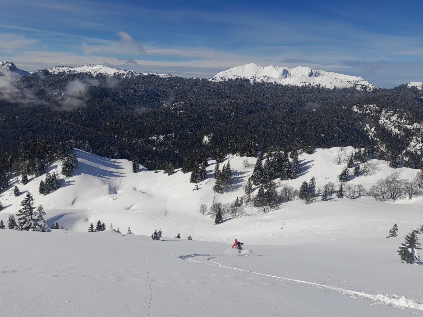 Conditions pour le ski : Globalement bonne! Descente O et NO en poudre, haut de Chamechine 5* et vierge de toute trace. Quelques passages croutés, notamment le bas de Pré Bâtard).