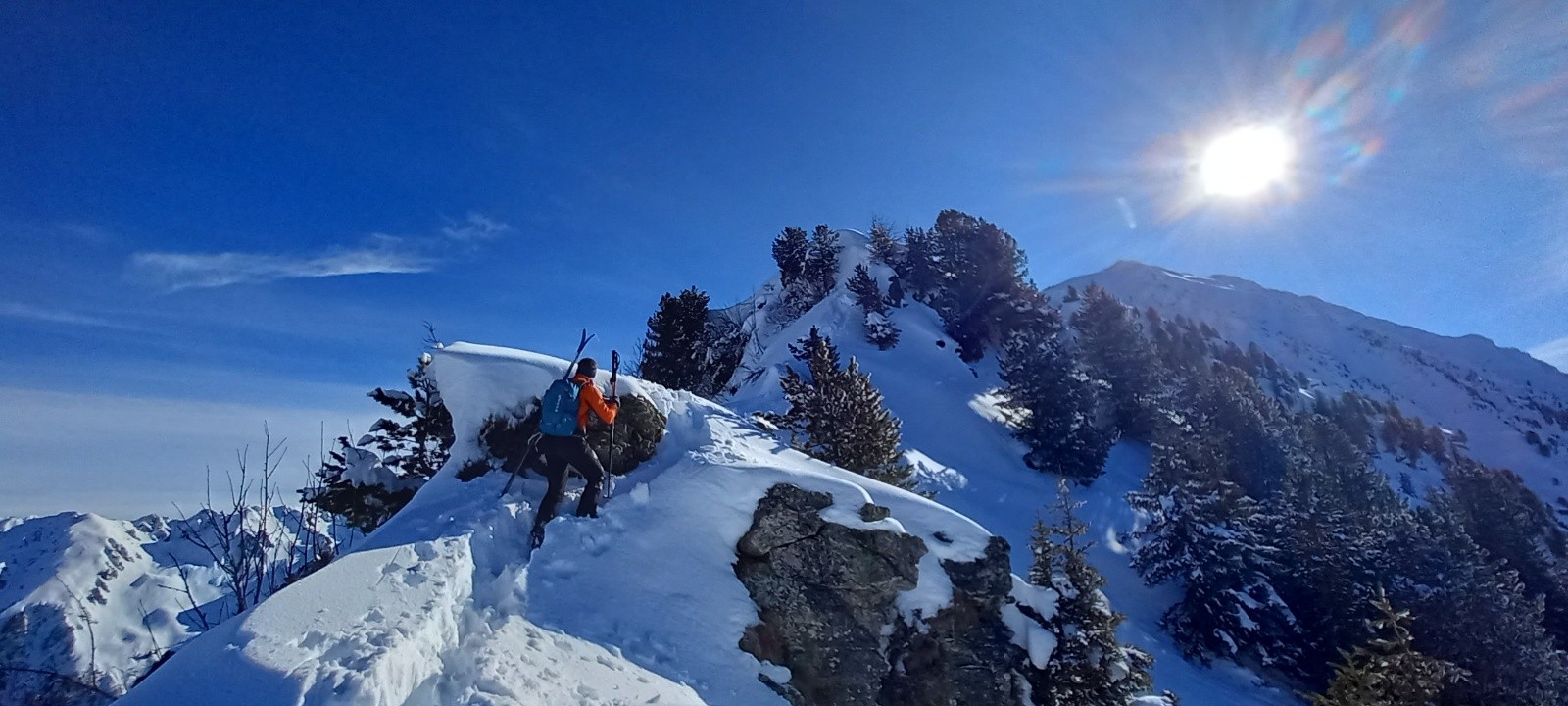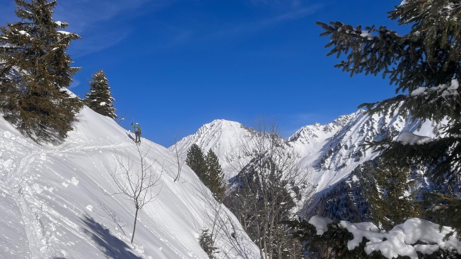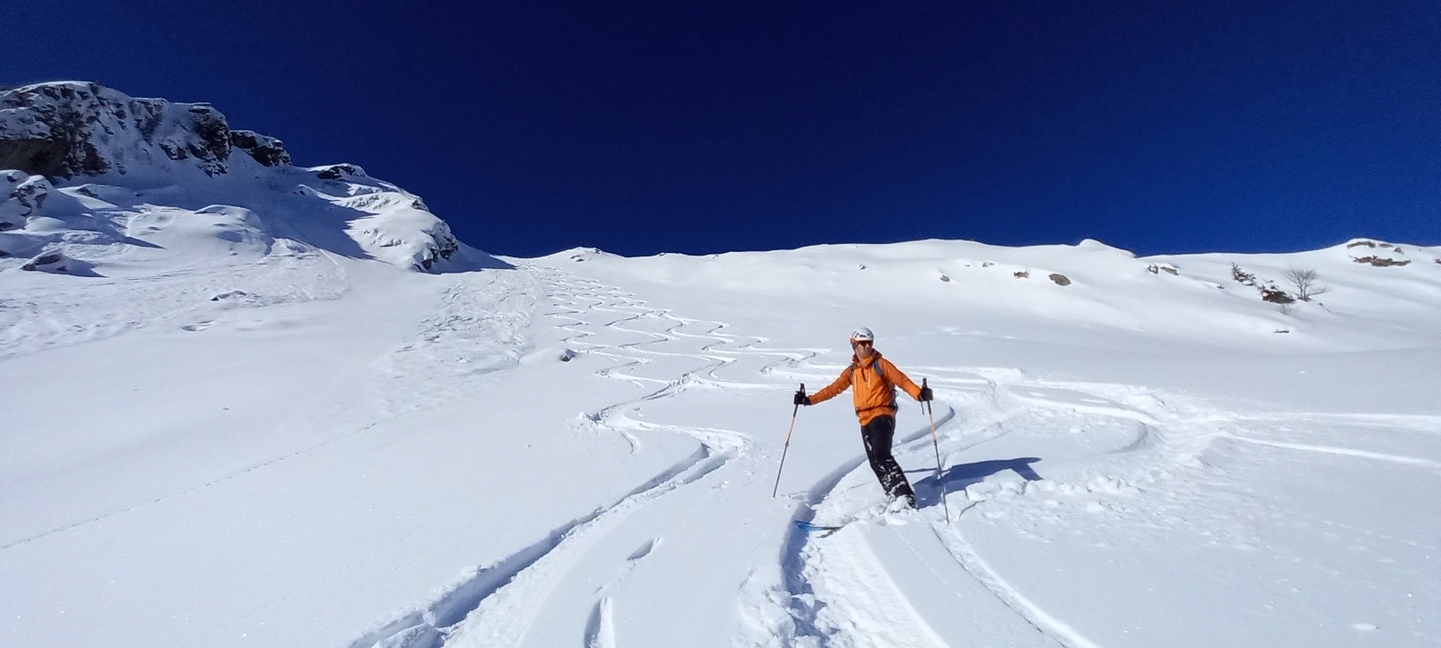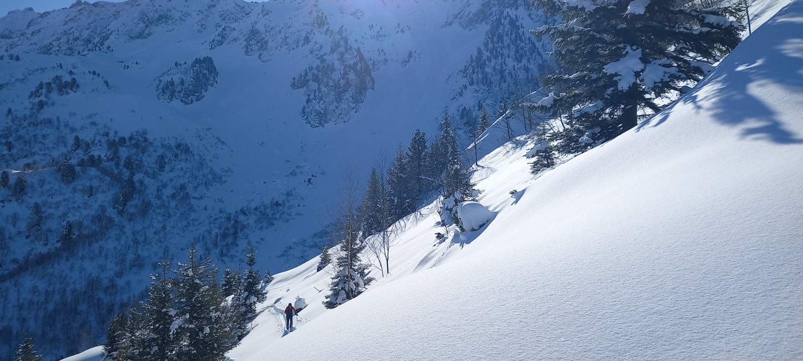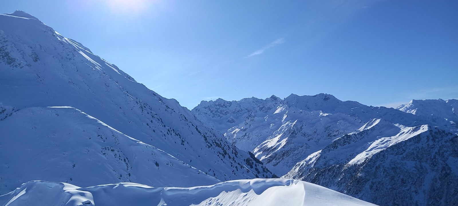 Conditions nivo et activité avalancheuse : RAS sur l'itinéraire skié (le long des crêtes de Plagnes, un des couloirs raides semblait avoir été déclenché?...)