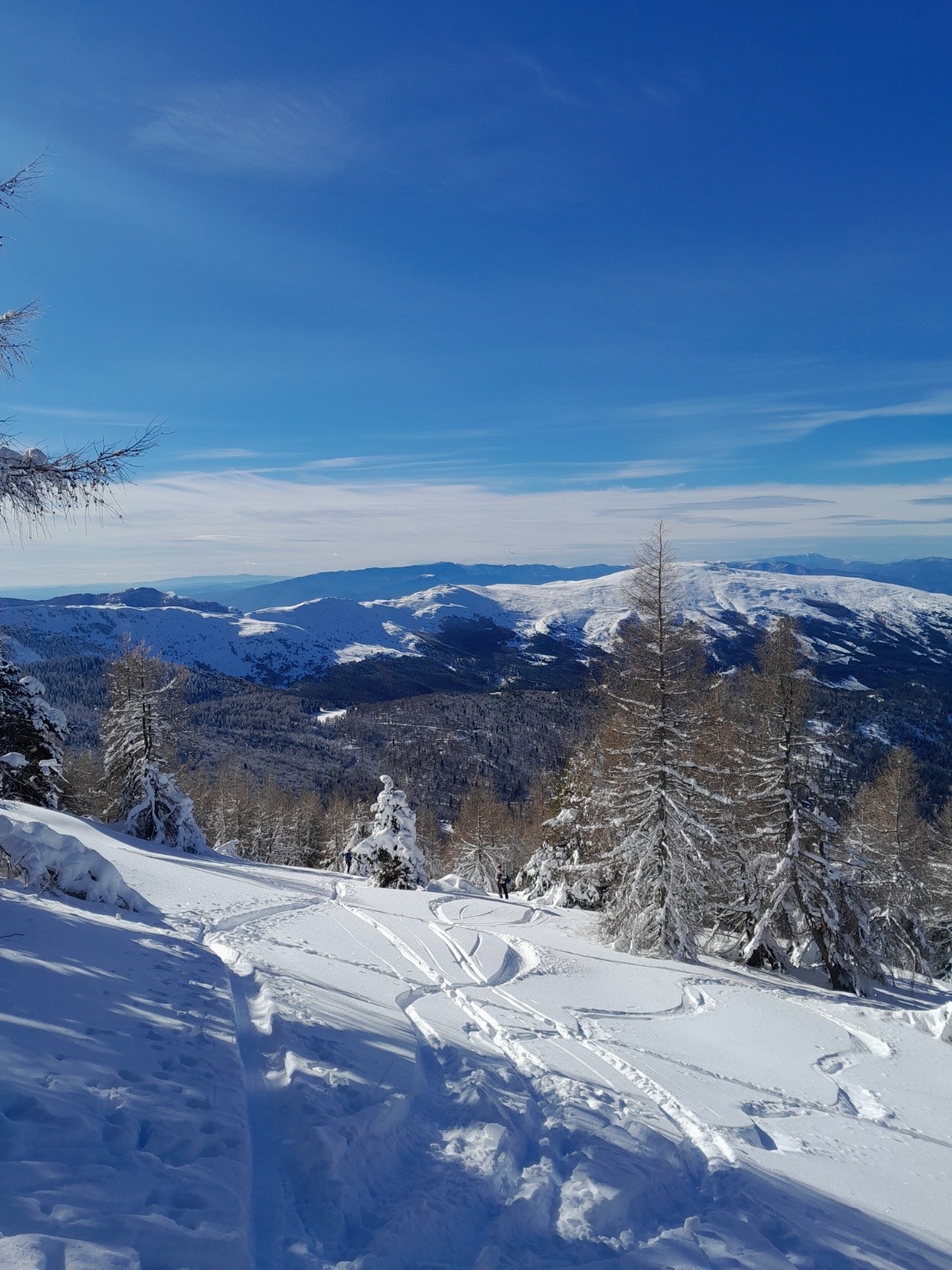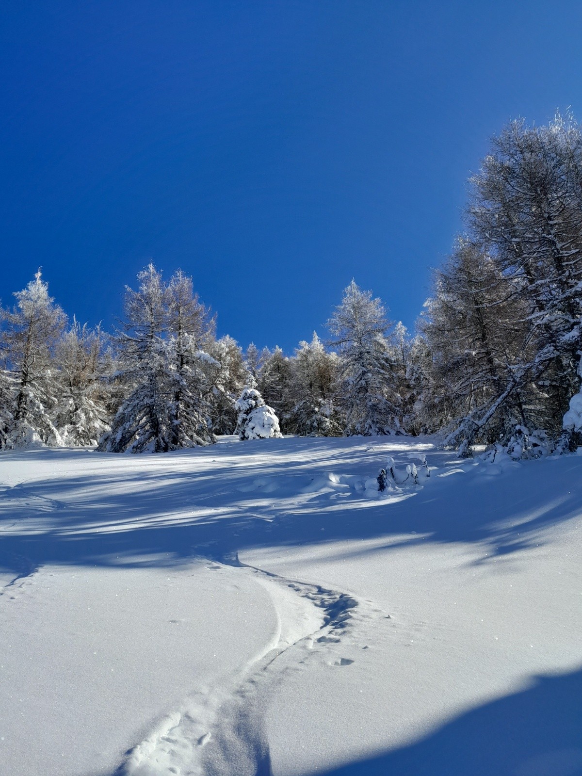 Conditions pour le ski : excellente. Chemin en neige de printemps voire poudre givrée ****. De 1500 à 1700 : 10 cm de poudre sur un fond dur *****. De 1700 à 2050 : de 20 à 50 de poudre dense et froide parfaite *****. Les 50 derniers mètres en neige soufflée ****.