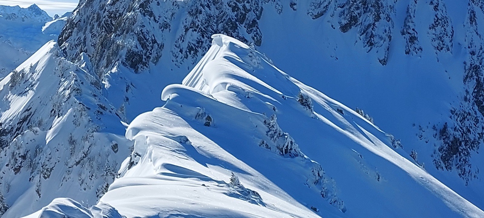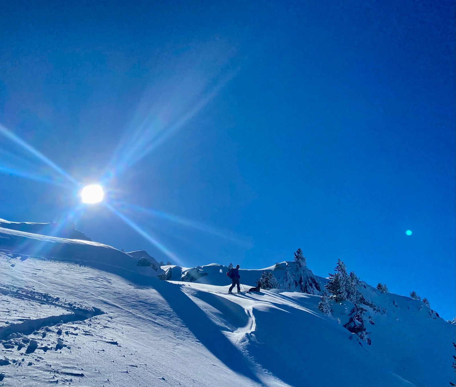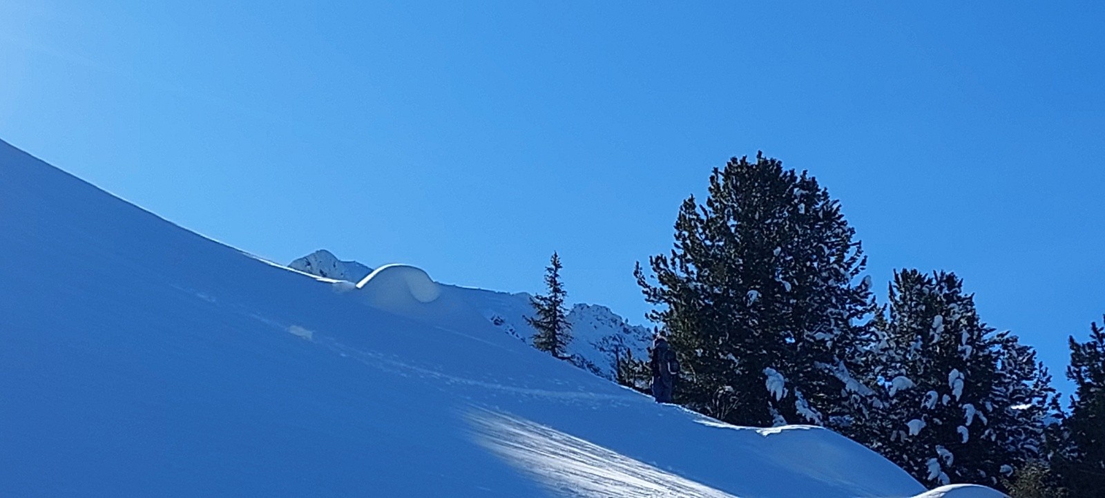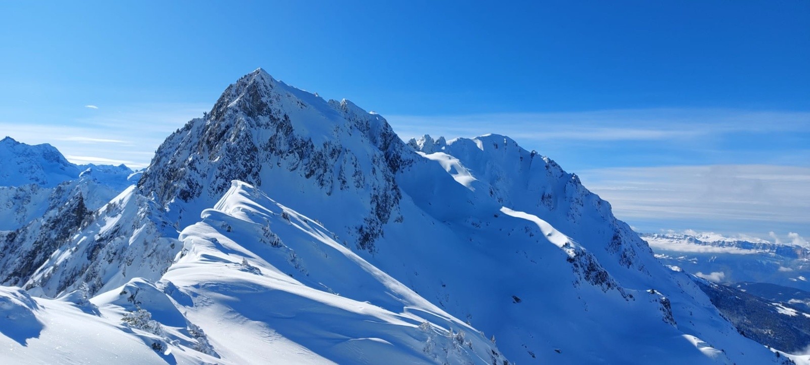 Conditions pour le ski : Excellente, je mets un 5⭐️ mais vous informe que sous 2000m d'altitude subsistent quelques requins sur les croupes soufflées par le vent