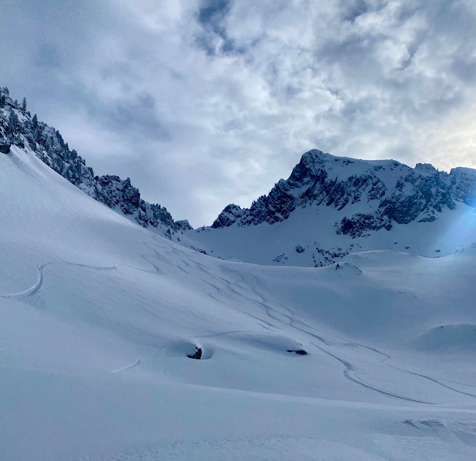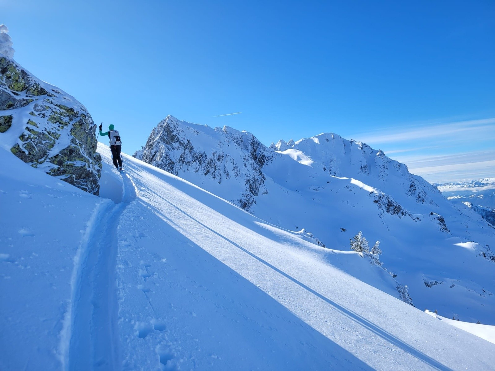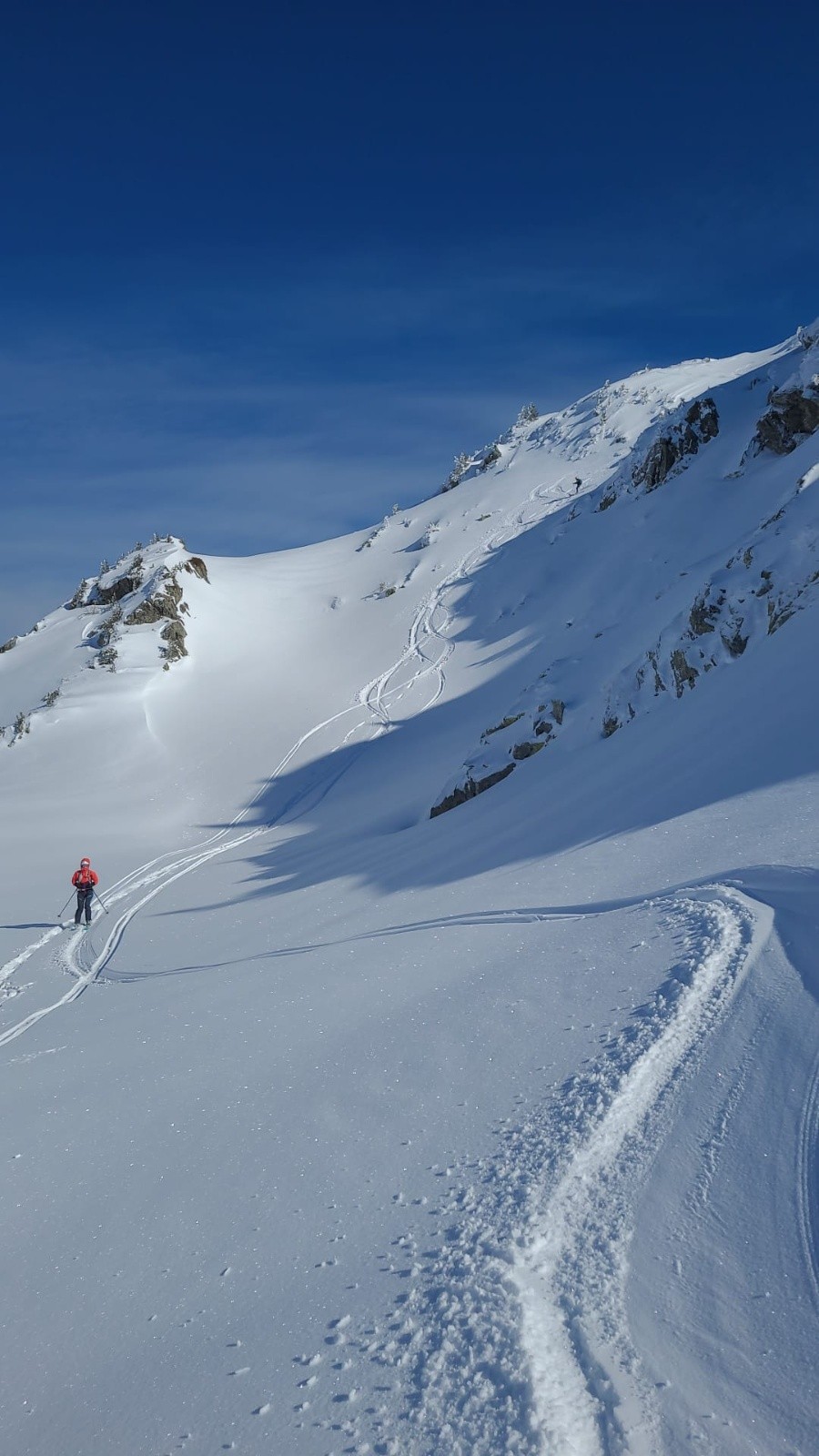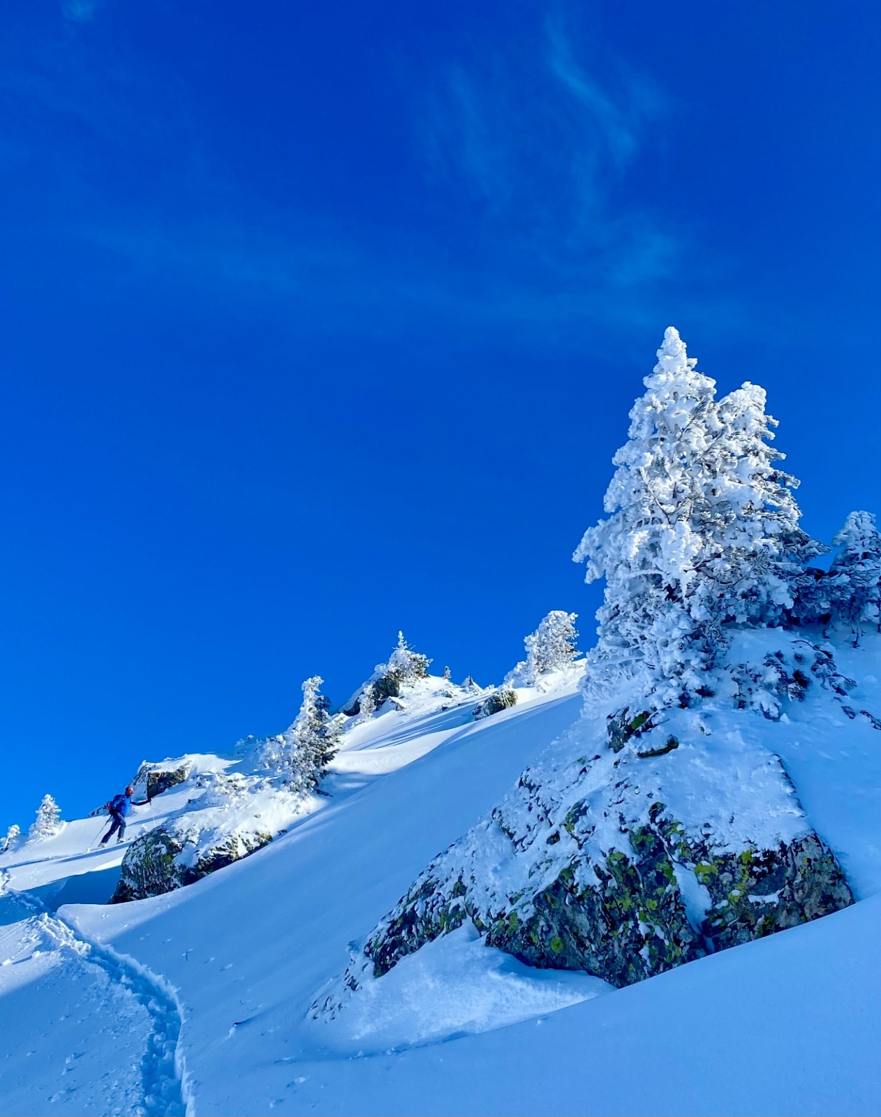 Conditions pour le ski : Excellente, je mets un 5⭐️ mais vous informe que sous 2000m d'altitude subsistent quelques requins sur les croupes soufflées par le vent