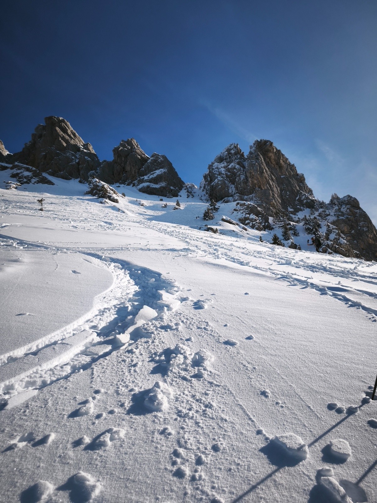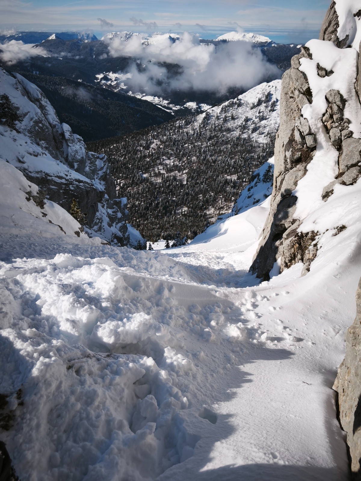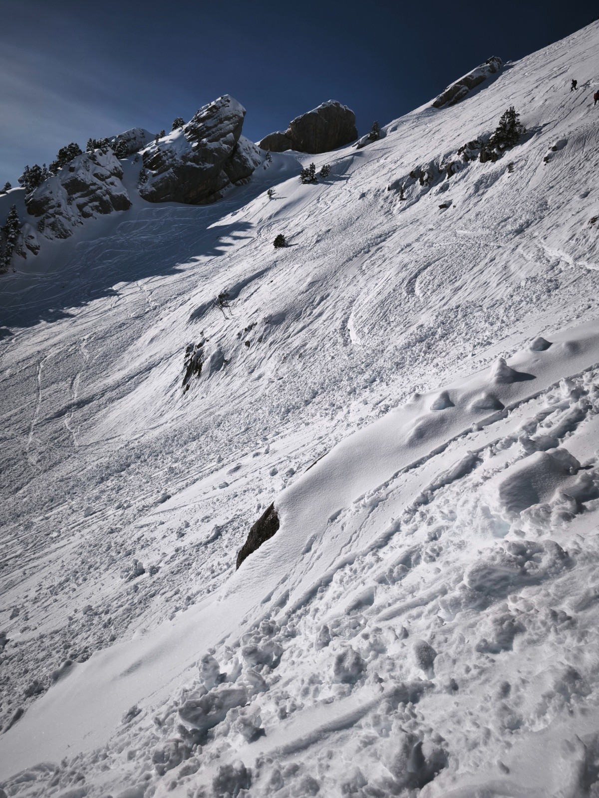 Conditions nivo et activité avalancheuse : des coulées de la veille sur le versant est des lances, on en fera de nouvelles sans conséquence.