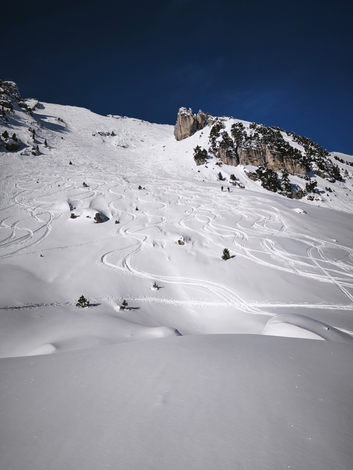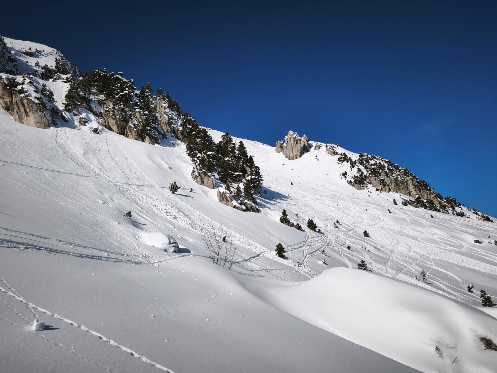 Topos associés : Lances de Malissard, couloir W en boucle Lances de Malissard, versants O>E en boucle Dôme de Bellefont, Face SO