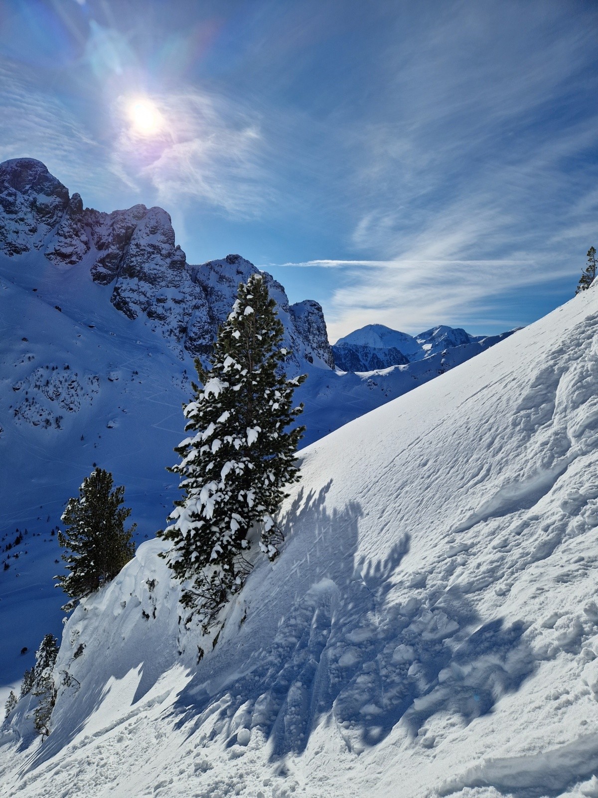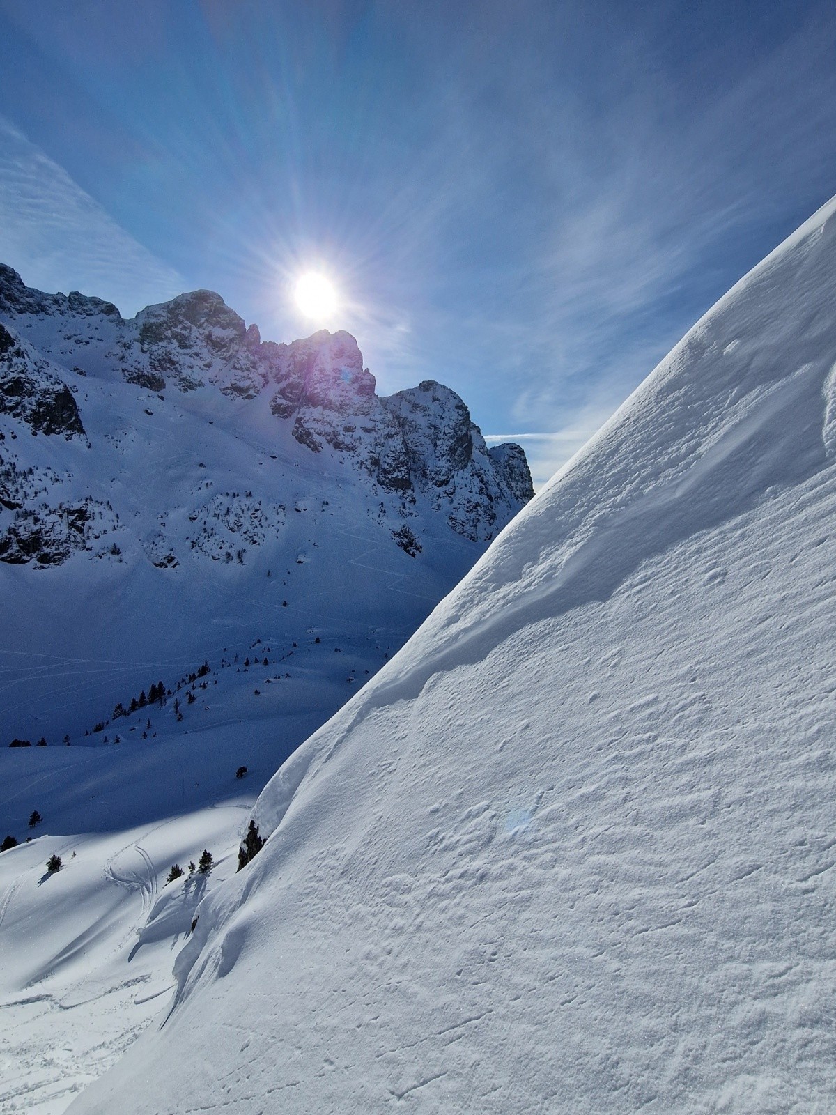 Conditions pour le ski : très bonnes conditions, poudre plus ou moins trafollee en E de Eulier et NO des Vans