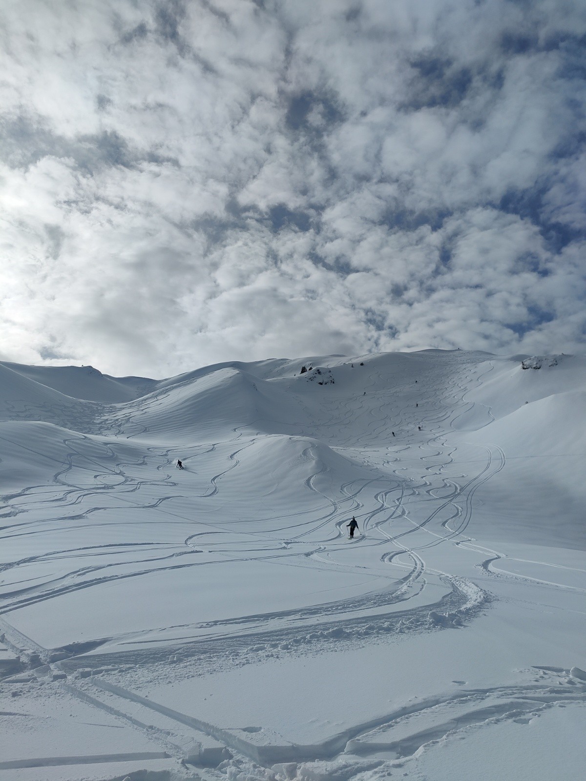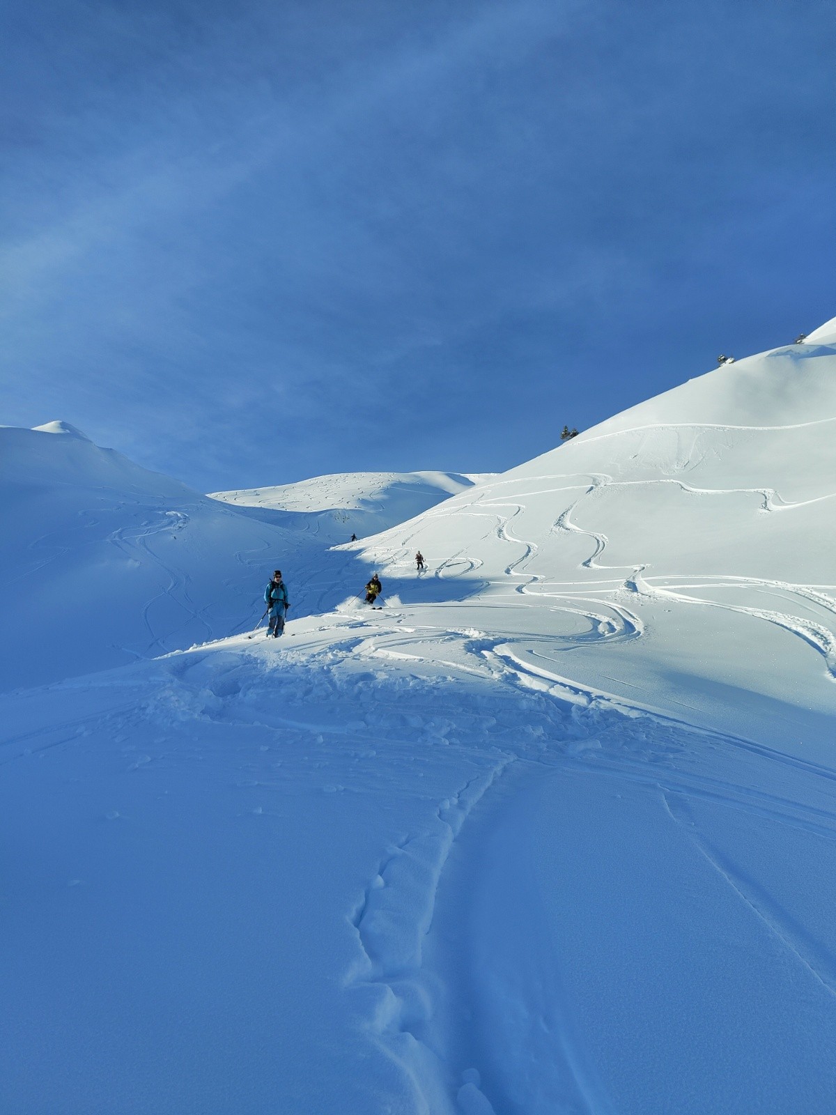 Conditions pour le ski : au moins 30 cm de fraîche et légère au dessus de 1800m. Un peu moins de fraîche plus bas, mais bien assez. A la lisière de la forêt, ça commence a s'alourdir même a 10h.