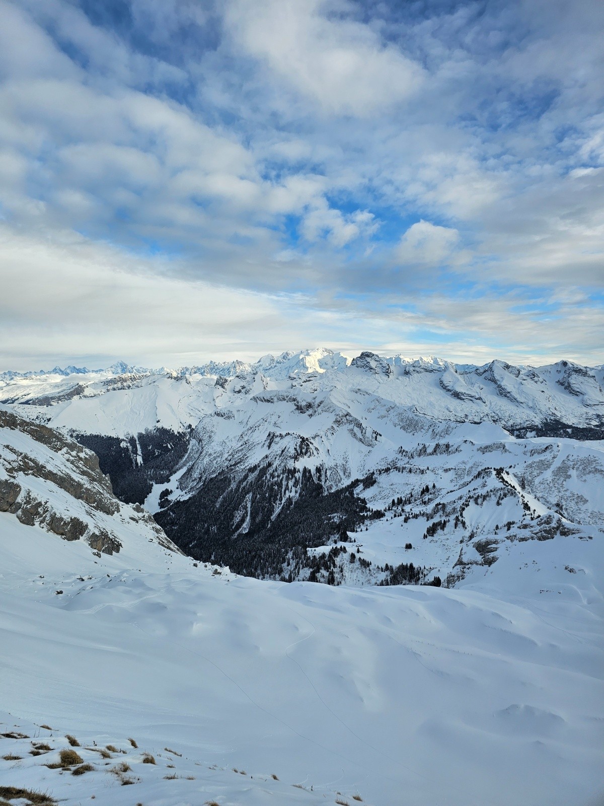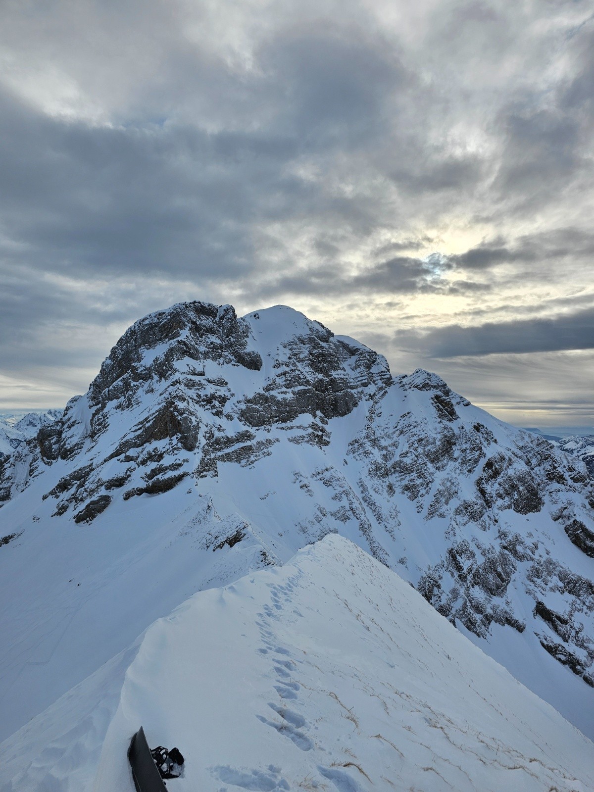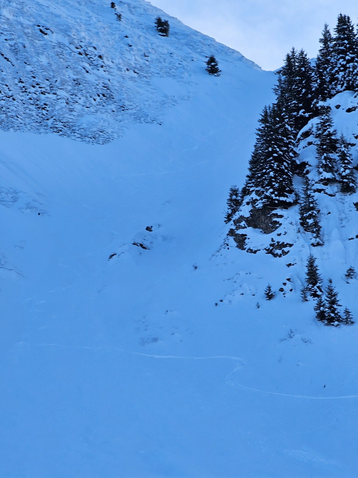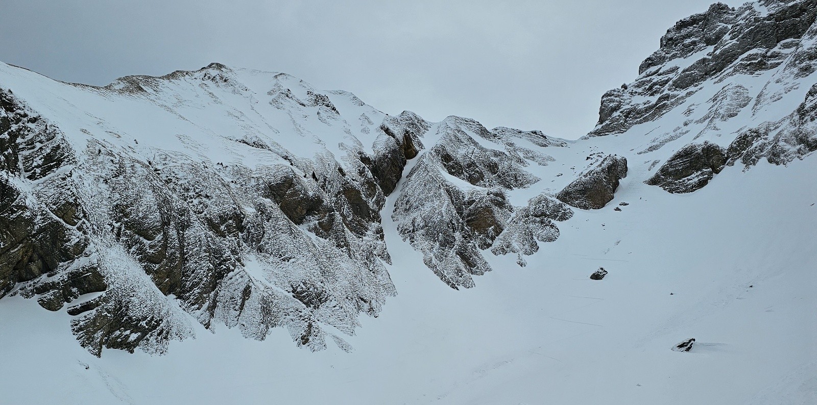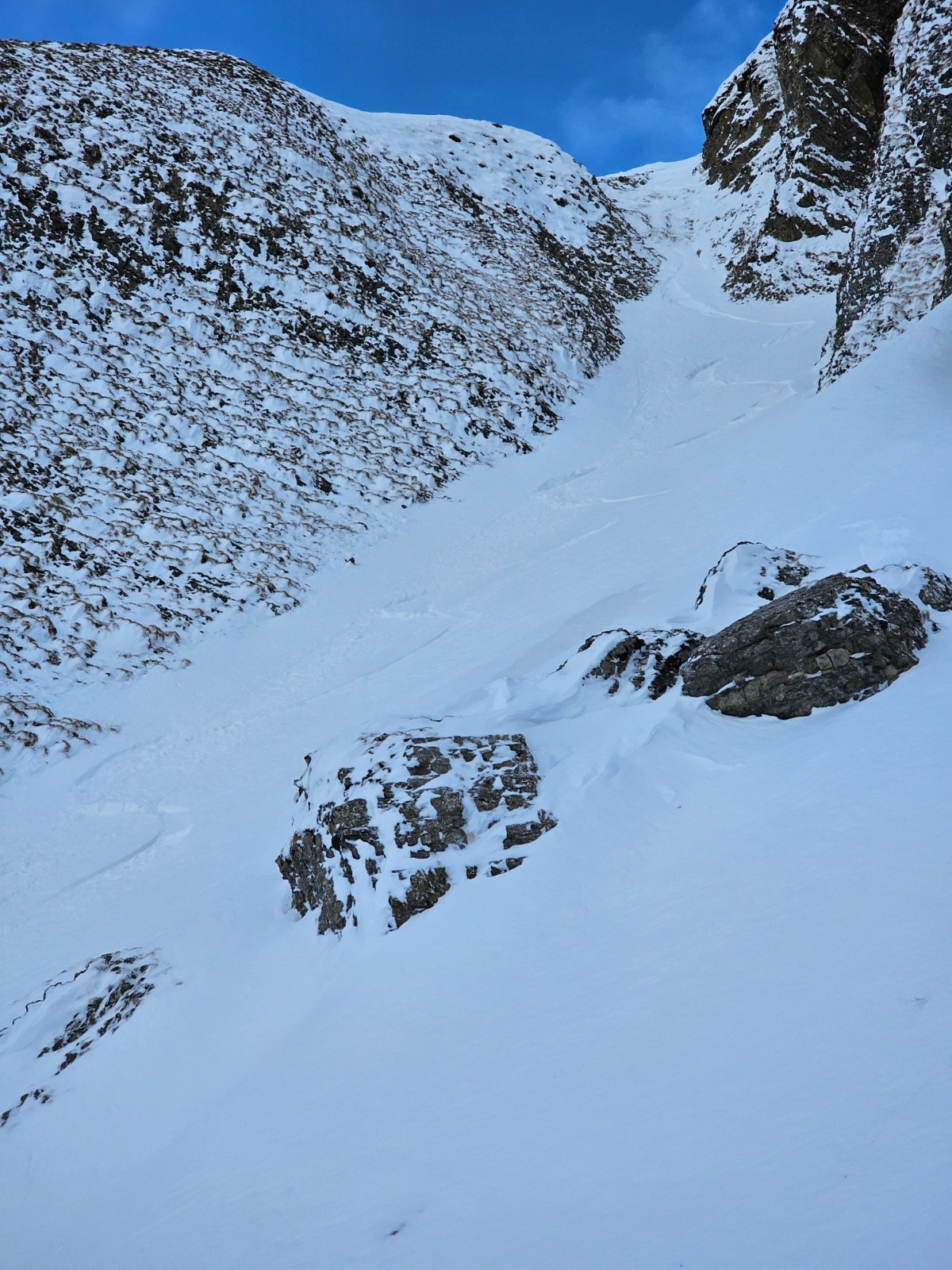 Le couloir NW classique est bien chargé et non tracé j'ai suivi 2 traces qui s'arrêtaient sous la face N de balafrasse qui s'est rempli mais reste encore sèche surtout les ressauts du bas