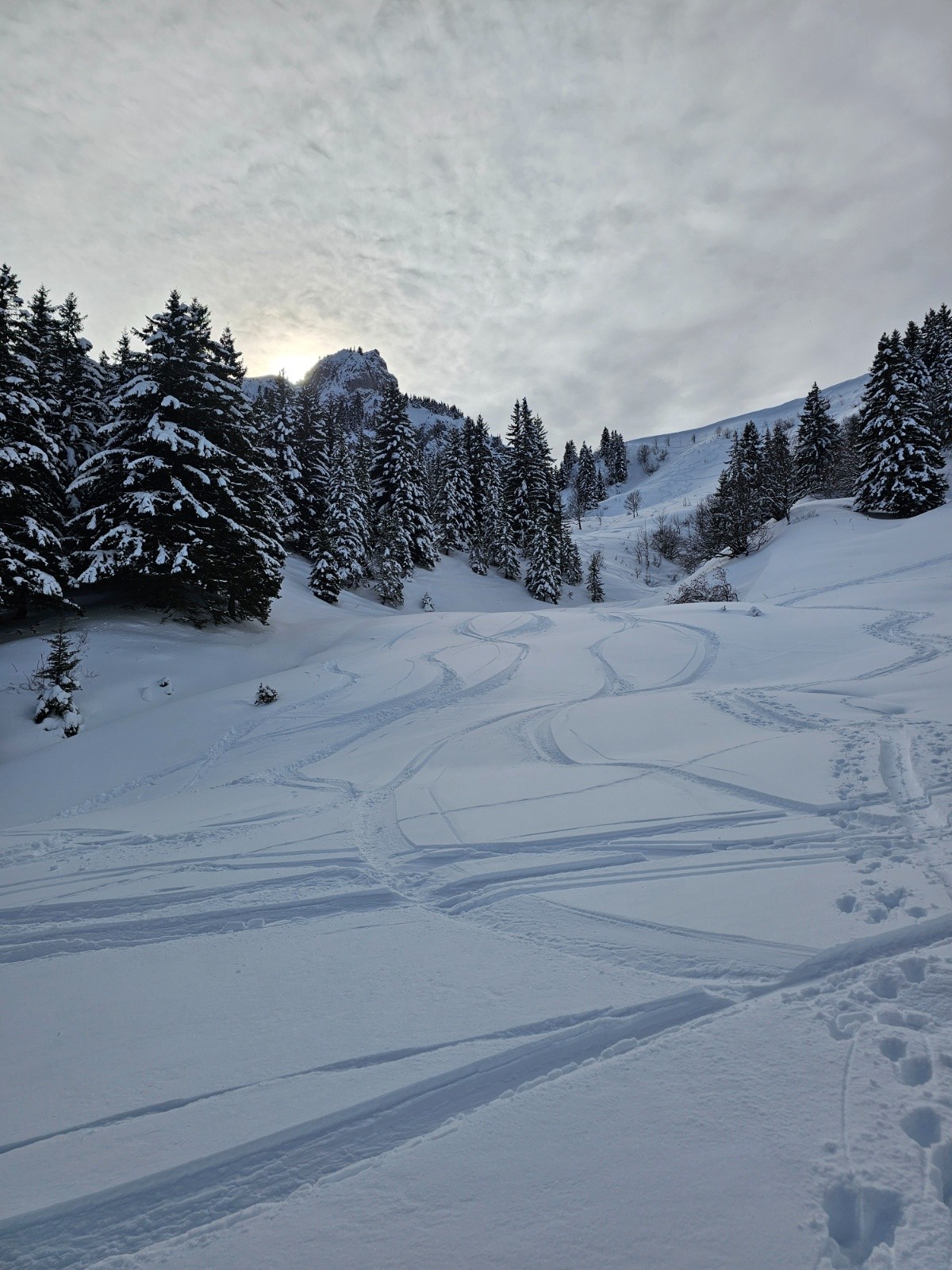 Conditions pour le ski : grosse épaisseur de poudreuse environ 20 à 40cm sauf les endroits soufflés