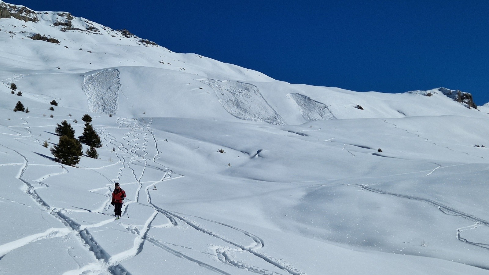 Conditions nivo et activité avalancheuse : nombreux départs de plaques sur pentes supérieures à 30°, grosse vigilance.