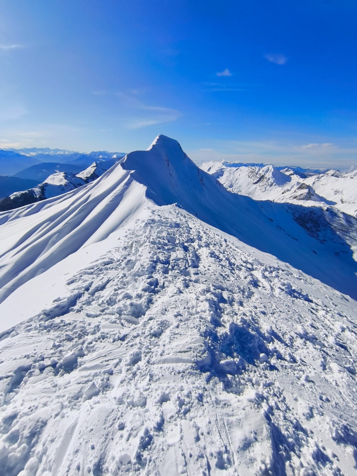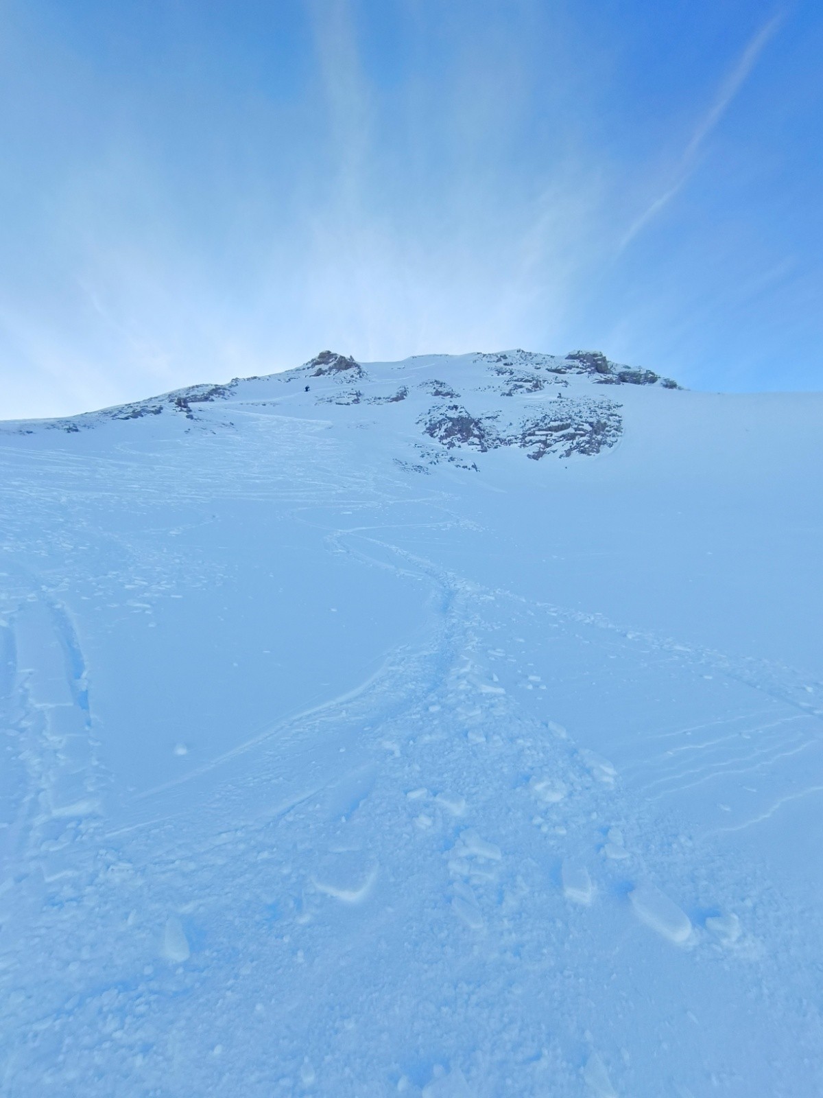Départ le matin en solo pour aller faire la pointe de la Sambuy, le parking est déjà bien rempli à 9h. Montée rapide jusqu'au pied de la Sambuy, tout est damé... sauf la Sambuy. La trace sera donc pour moi, bon brassage, content d'arriver au sommet. Descente "facile" dans environ 30cm de neige fraiche un peu dense. 3/4h de montée pour 1min de descente :D