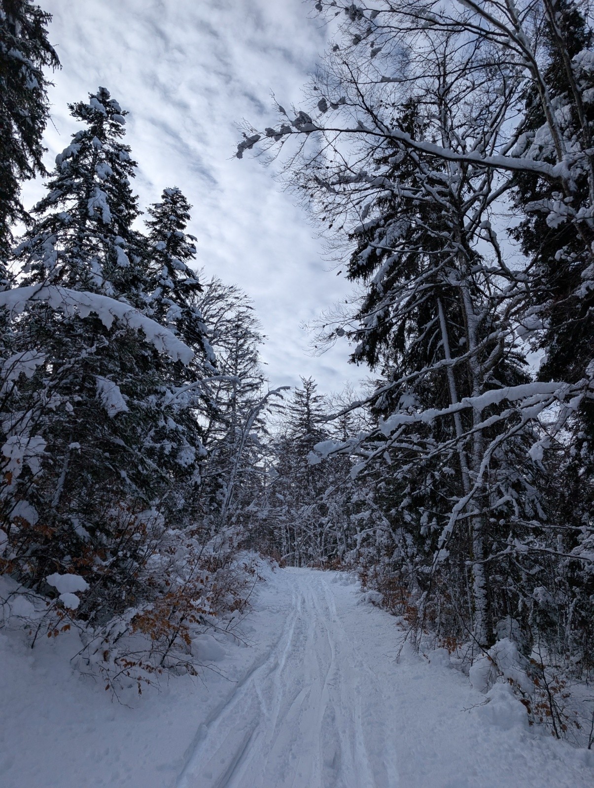 Conditions pour le ski : neige lourde, encore un peu de neige au départ mais dans la semaine ça risque d'être compliqué, longue montée pas bien raide dans la forêt ,pas l'habitude quand on vient du 05,
