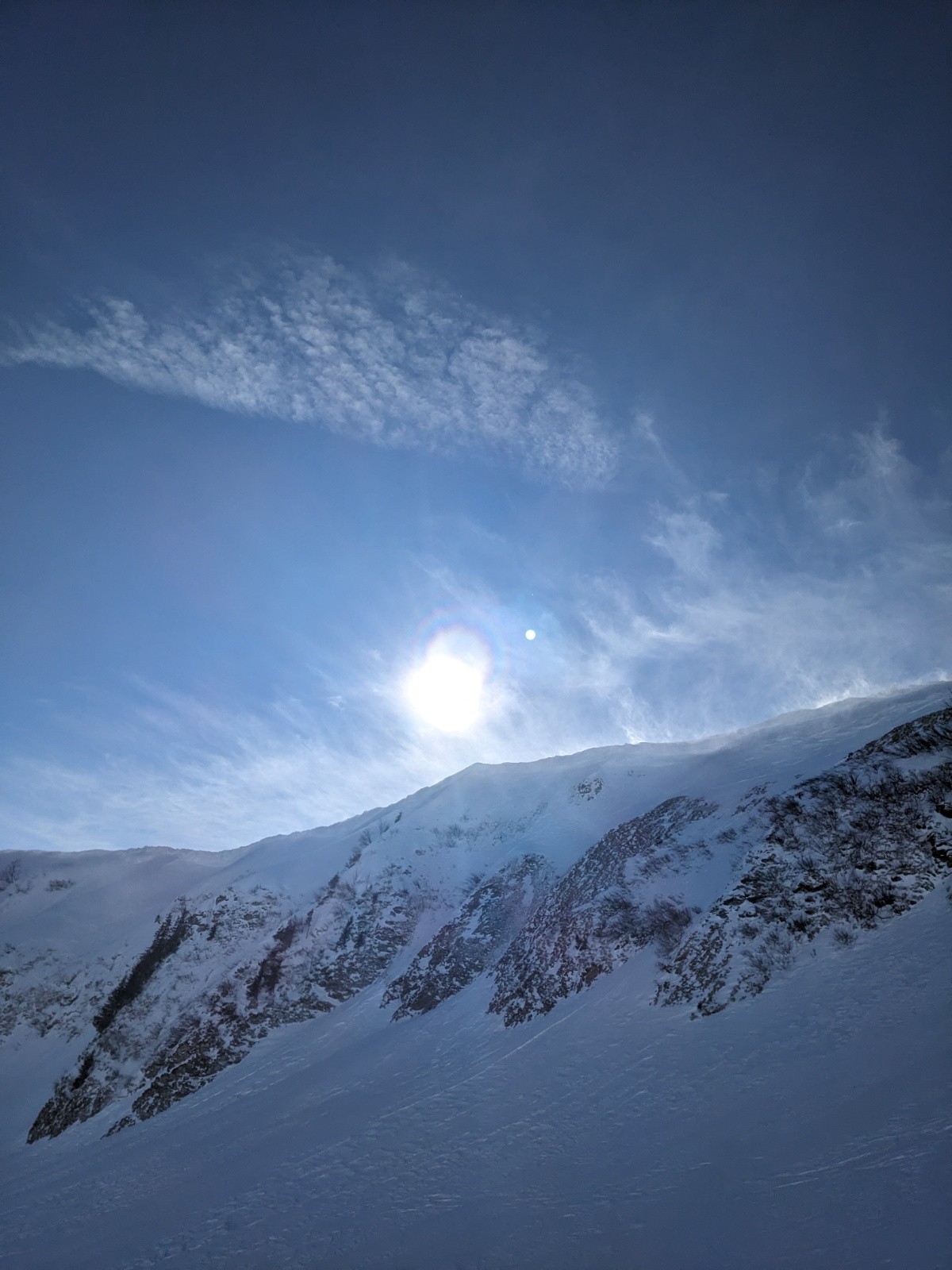 Conditions pour le ski : deux premières descentes très bonnes, pour la troisième la neige avait chauffé mais pas pire.