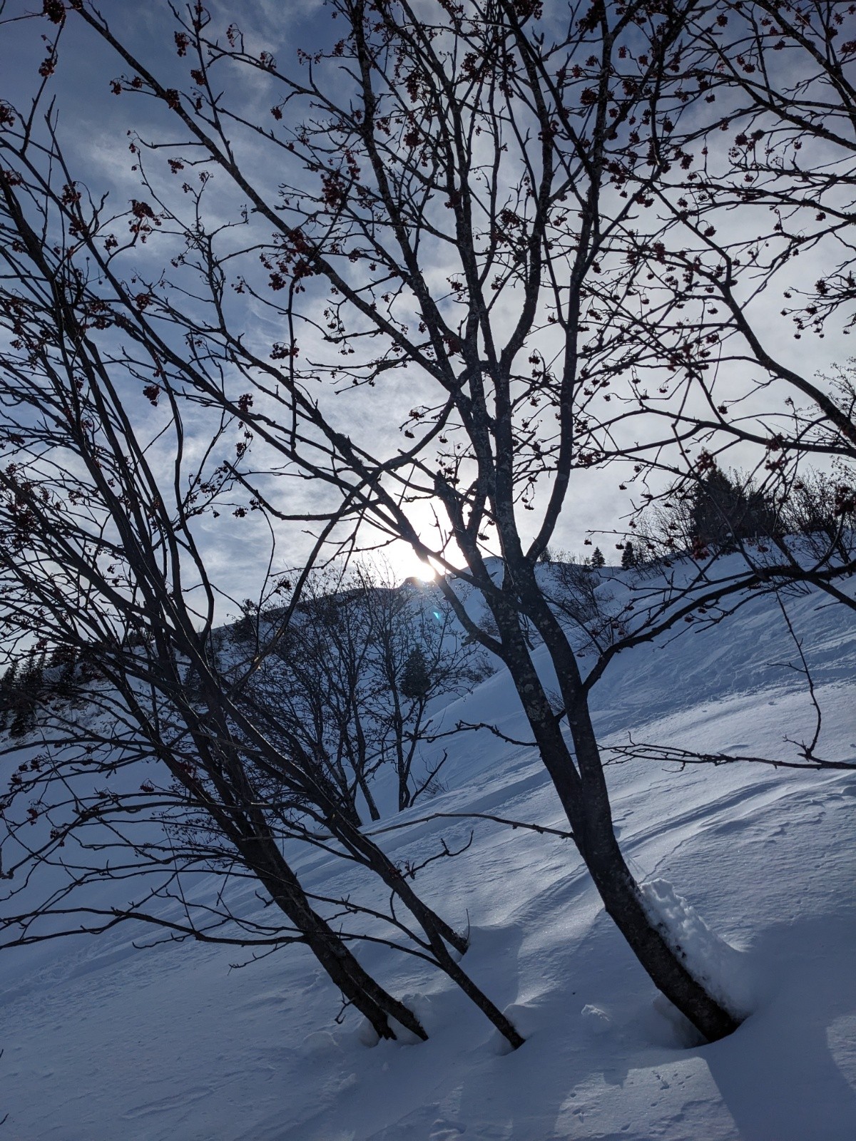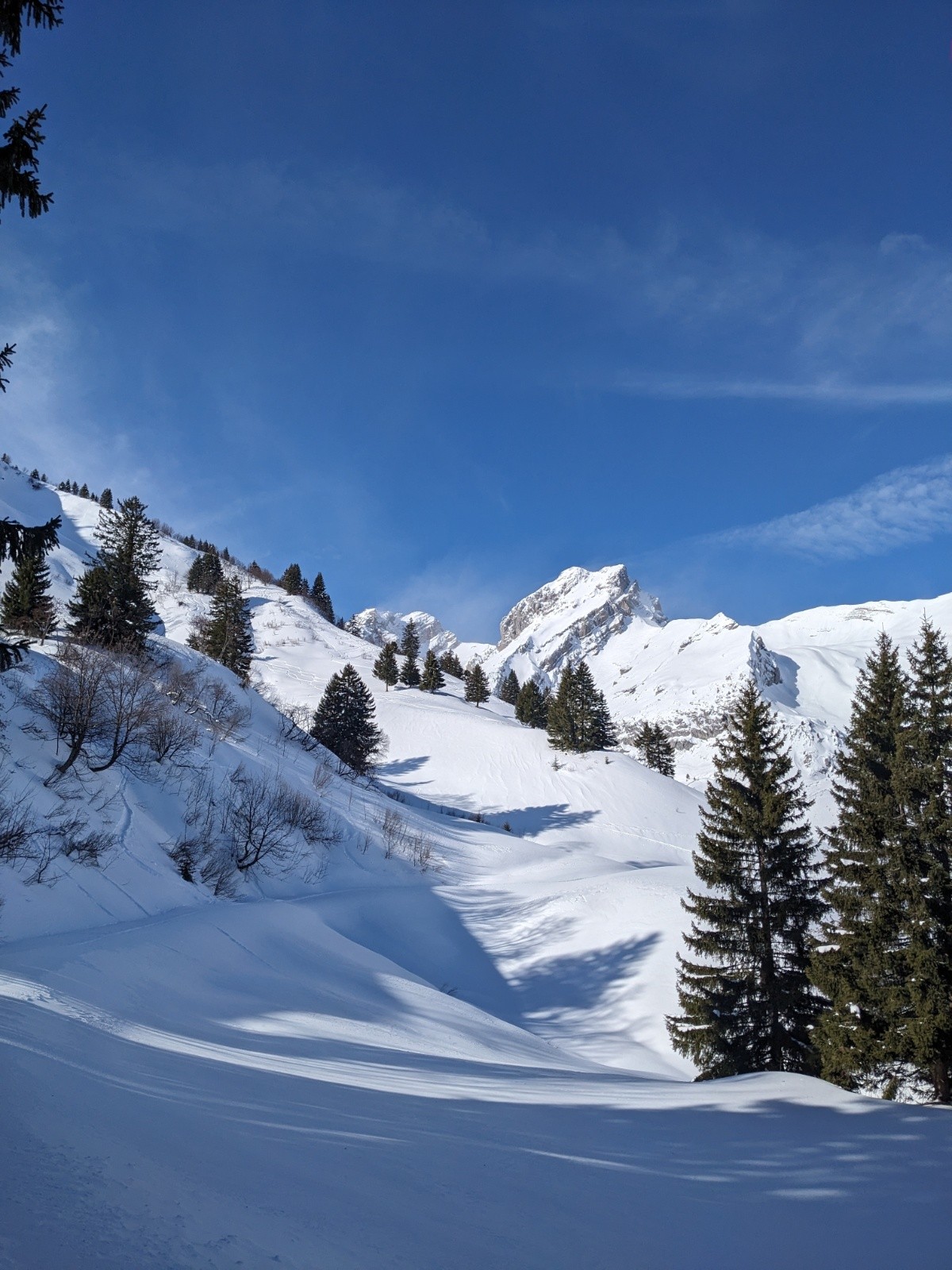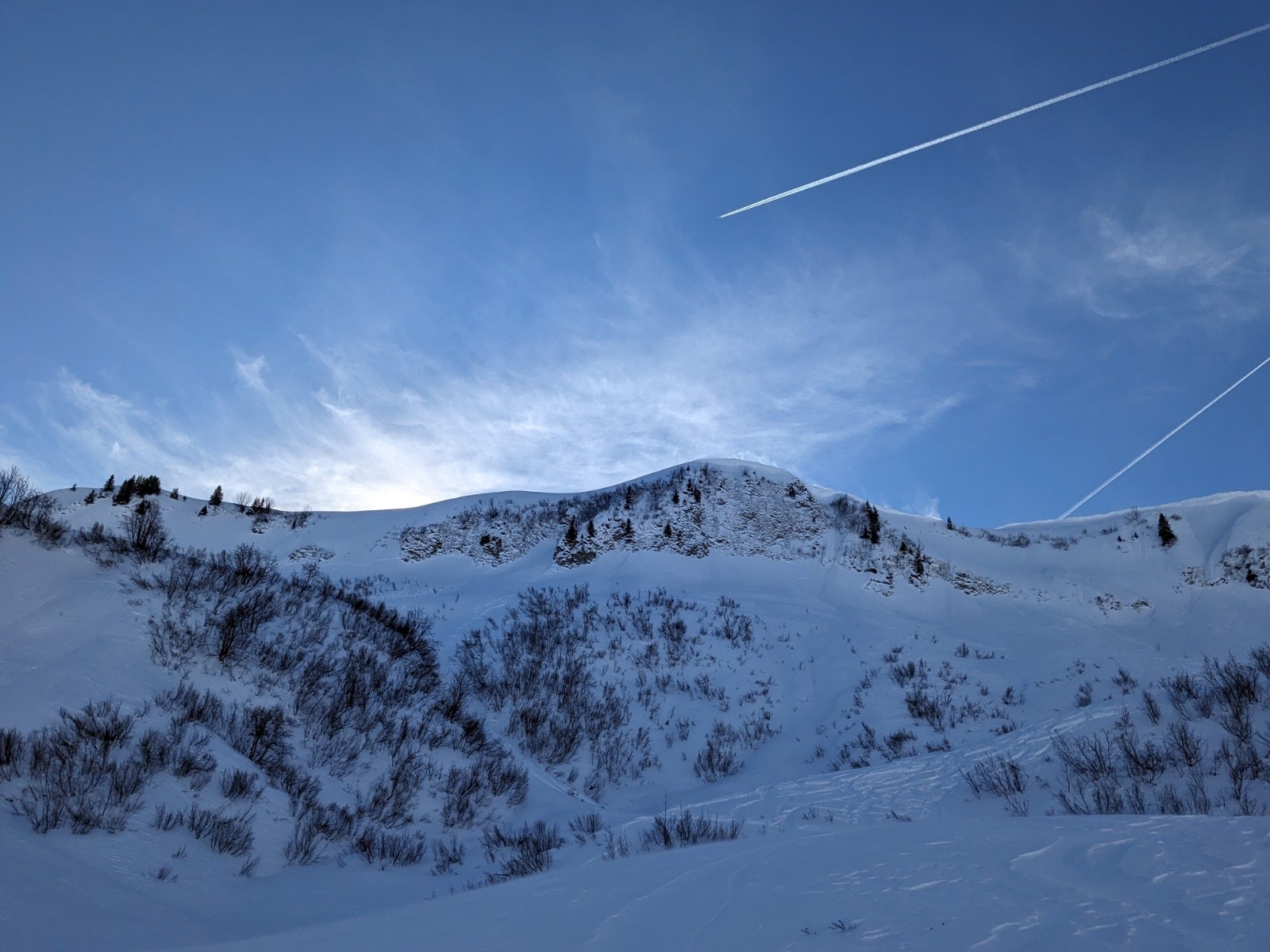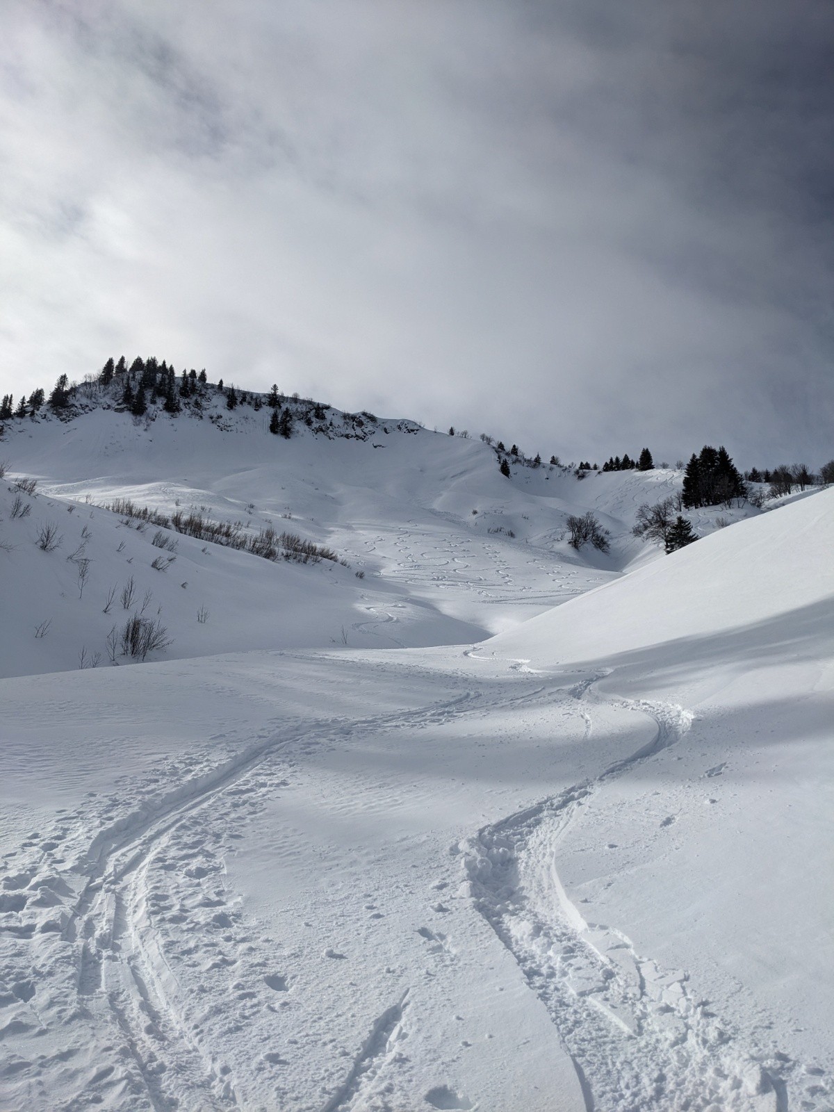 Premier contact avec les Aravis il y a déjà 17 ans pour Grand Crêt, souvenir bof bof. Je ne connaissais alors pas la règle des 50% : des confins, chaque combe est 50% moins fréquentée mais le curseur était déjà ultra haut pour Bellacha. Tellement de monde, c'est bien raide et pas ludique pour un sou. Au moins une vingtaine de personnes au sommet et les conditions étaient safe mais nulles. Heureusement, je ne me suis pas arrêté à cette mauvaise première impression : le sud et le nord des Aravis m'ont ensuite offert de très beaux souvenirs ! Bloniere, Roc des tours, Ballafrasse, Combe marto, tête de sallaz !