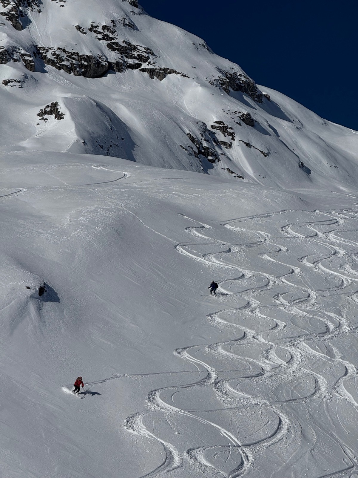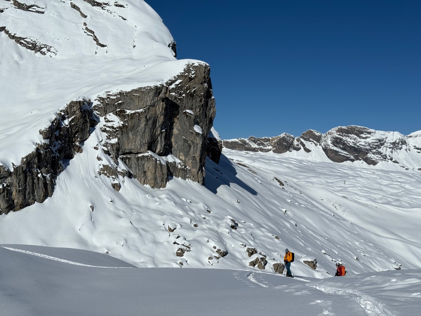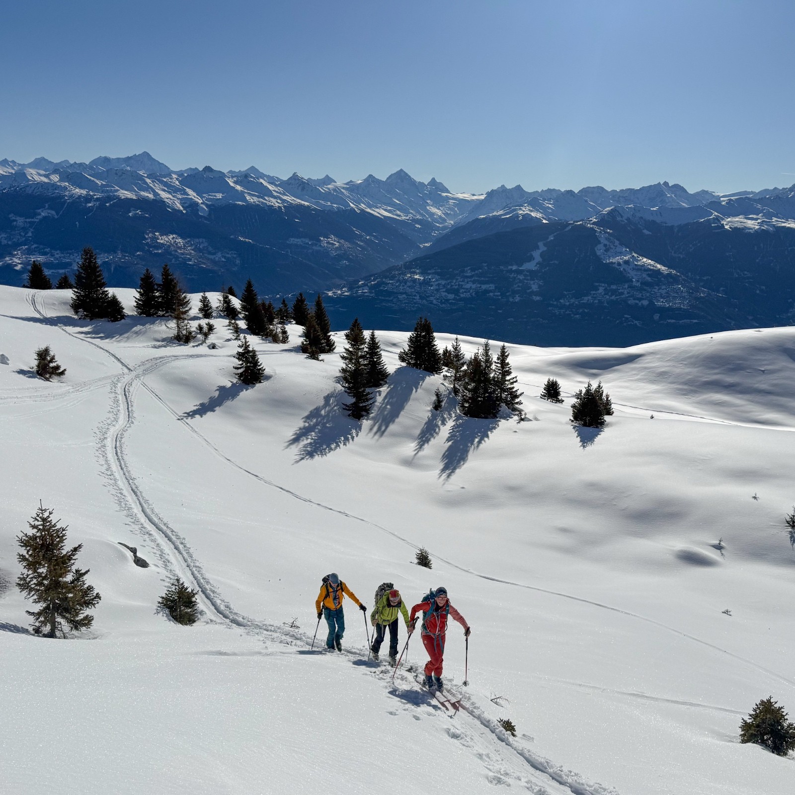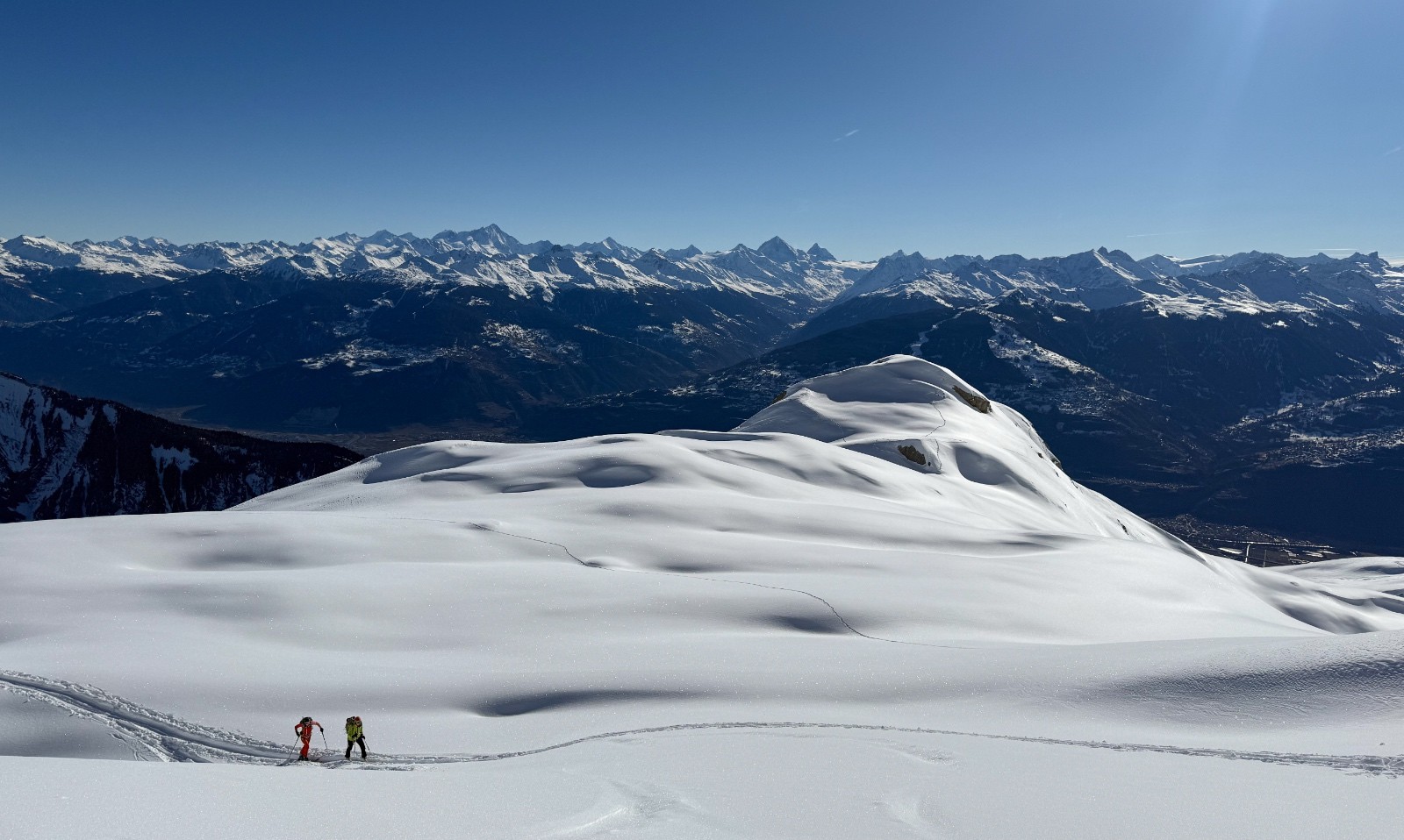Conditions nivo et activité avalancheuse : Semble plus stable que de l autre coté de la vallée du Rhône , pas de coulée apparentes mais on ne va pas chercher les pentes raides