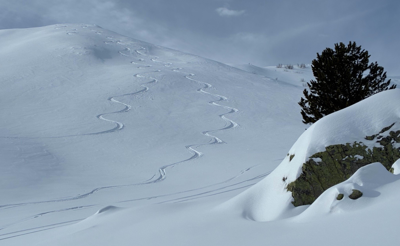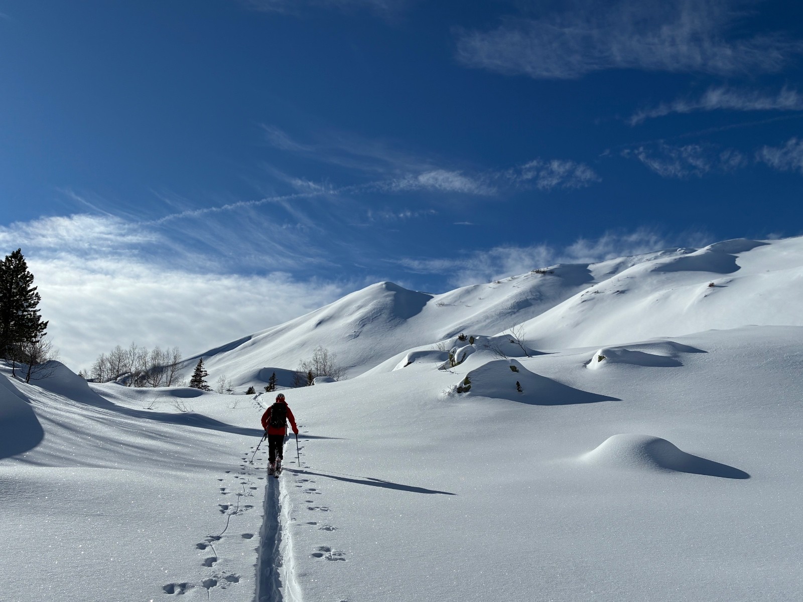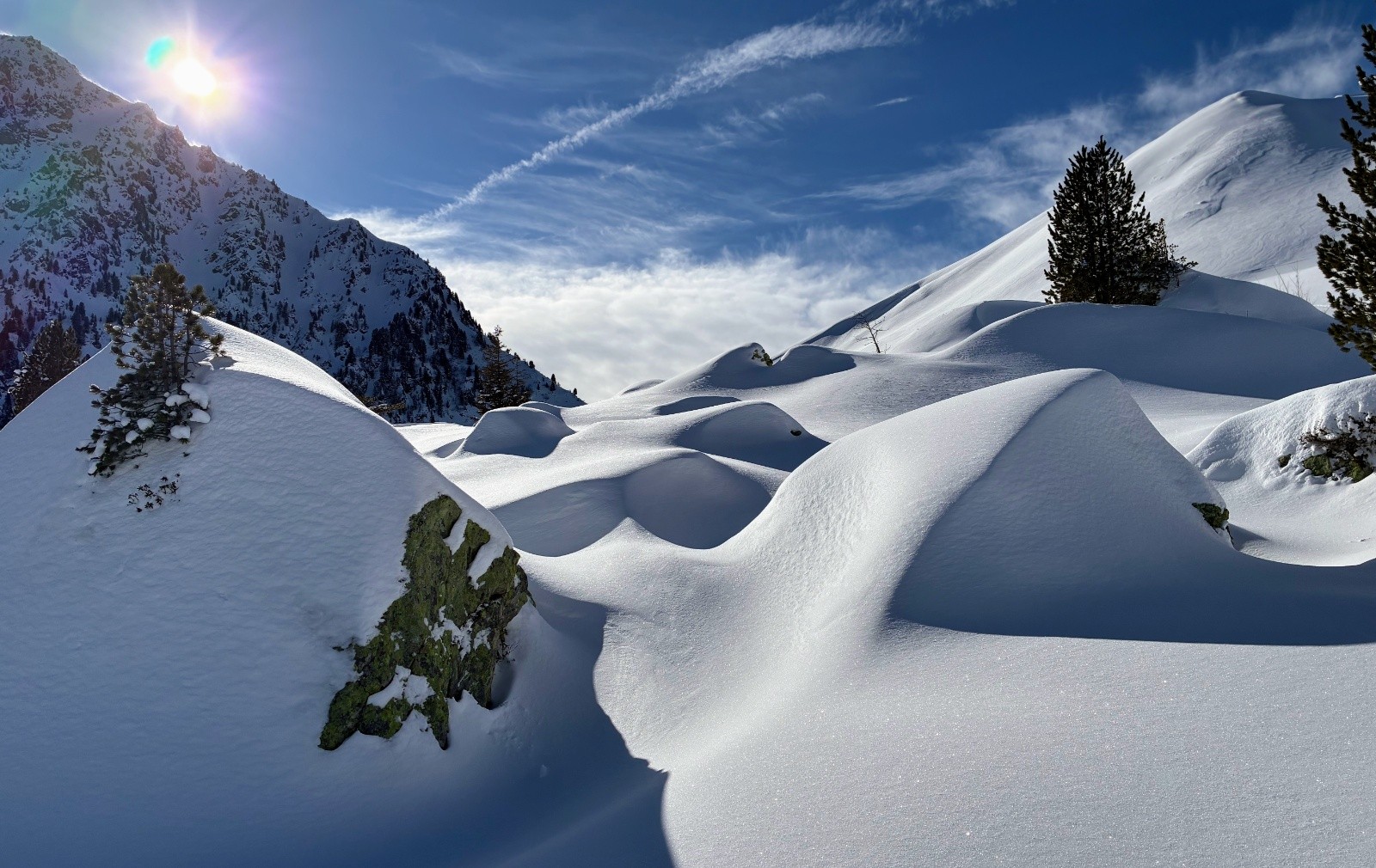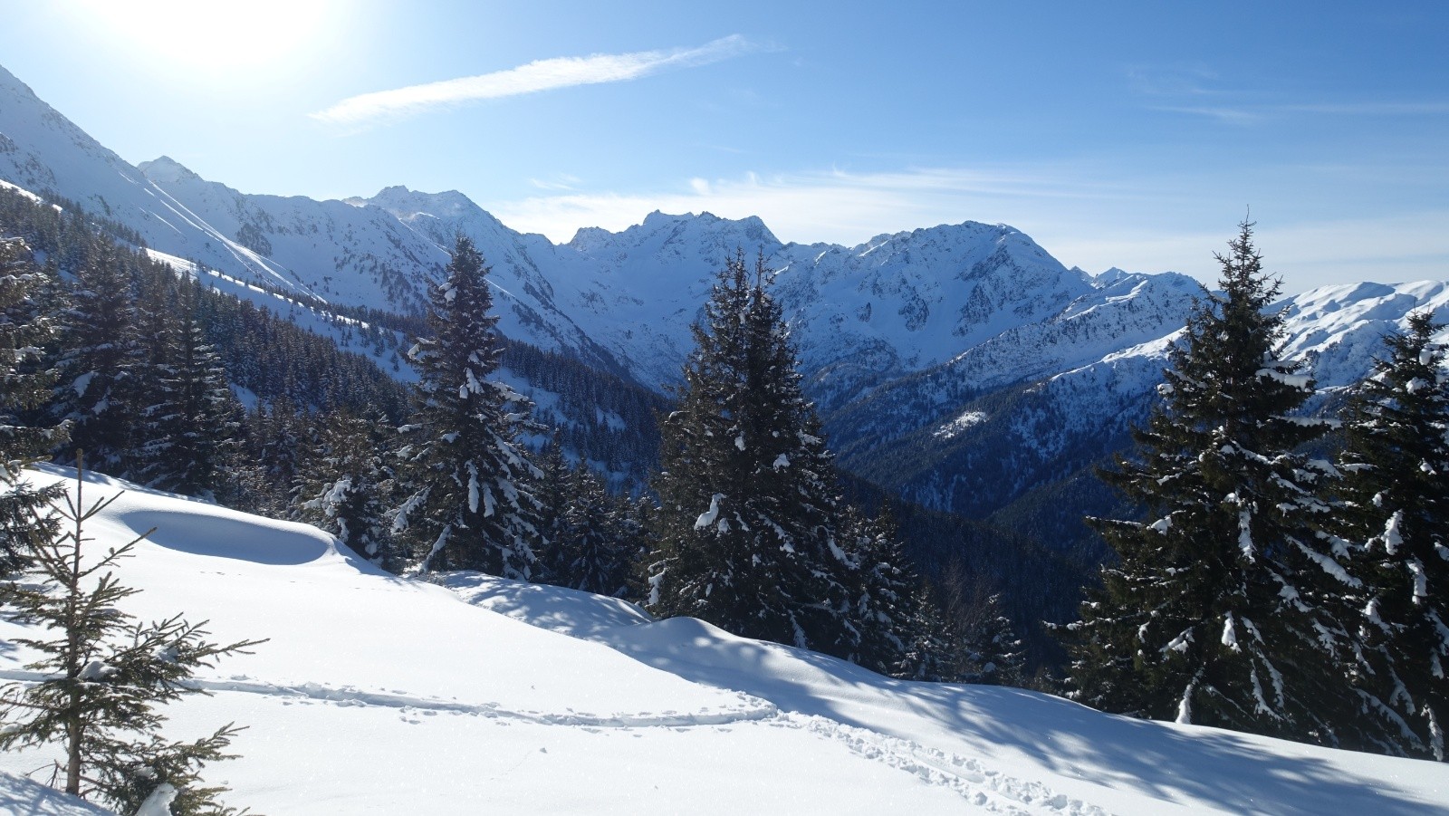 Conditions nivo et activité avalancheuse : rien vu, pas une seule coulée, neige poudreuse globalement sur tout le parcours mais très raffolées sur les pistes de la station et sur la route du retour
