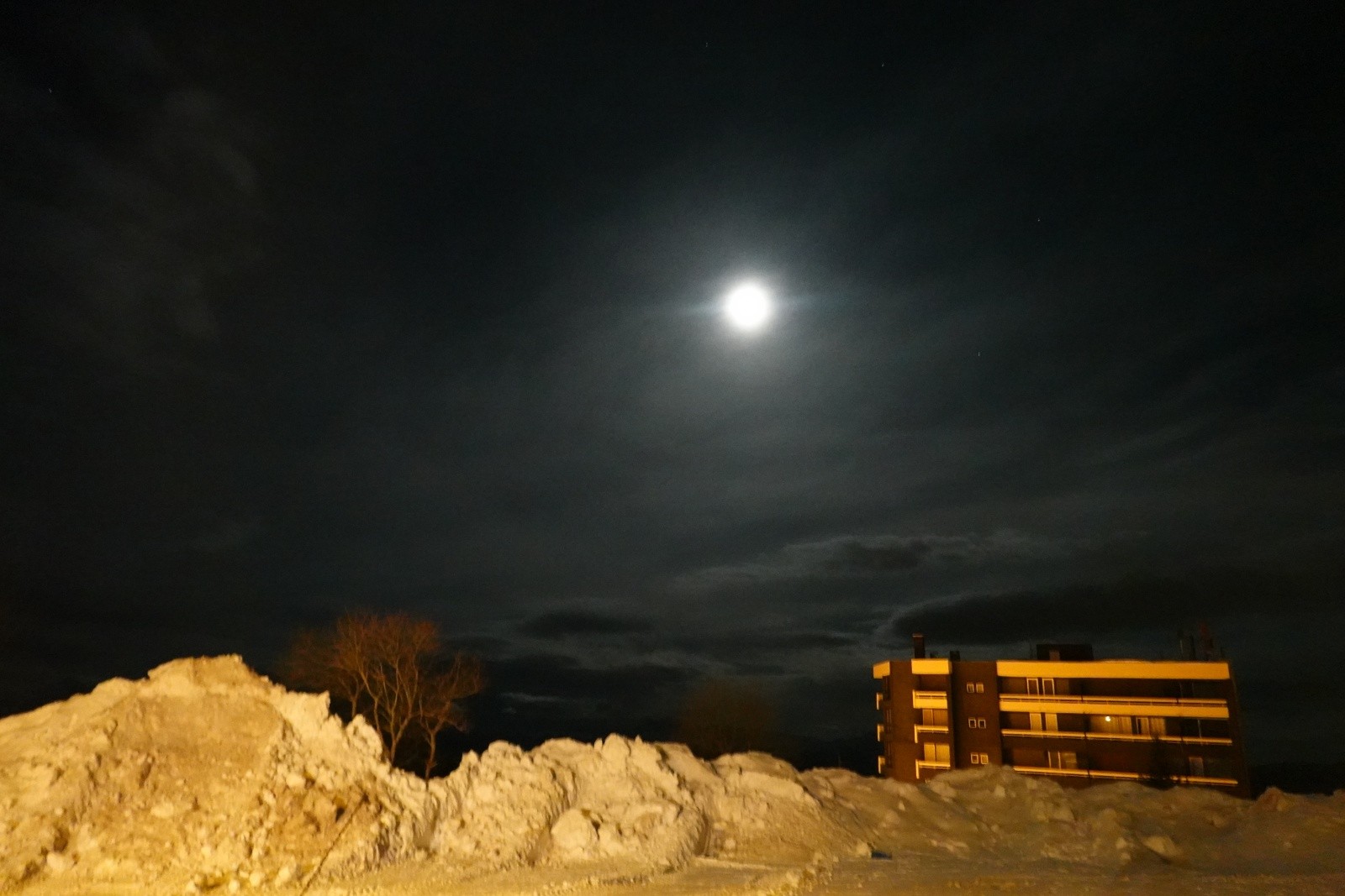 La lune, presque pleine, se bat avec les nuages pour exister.