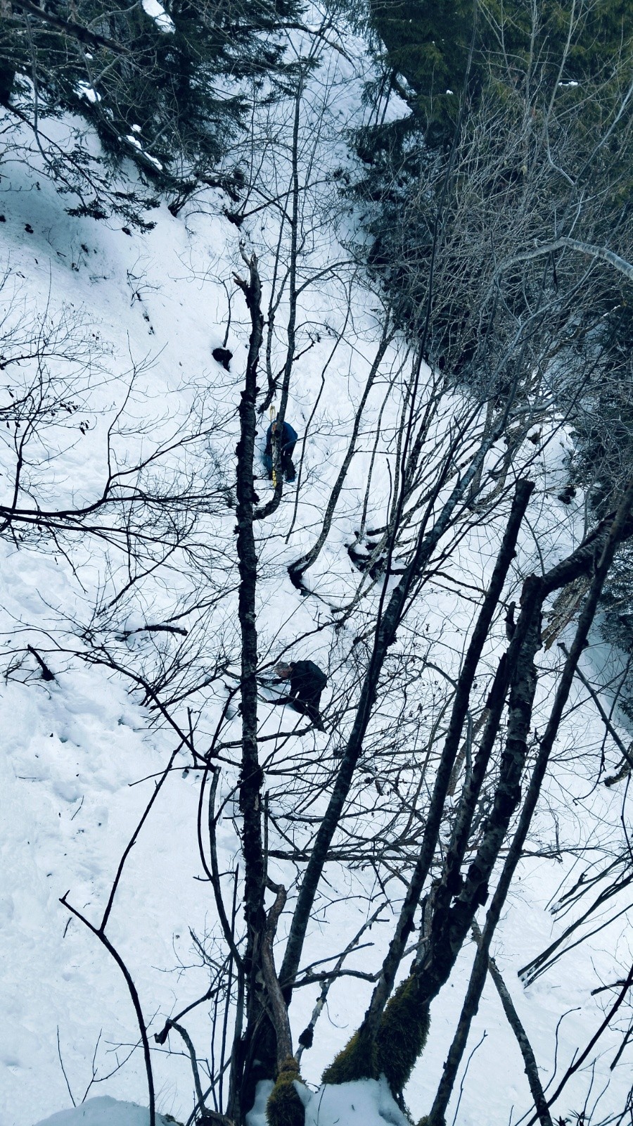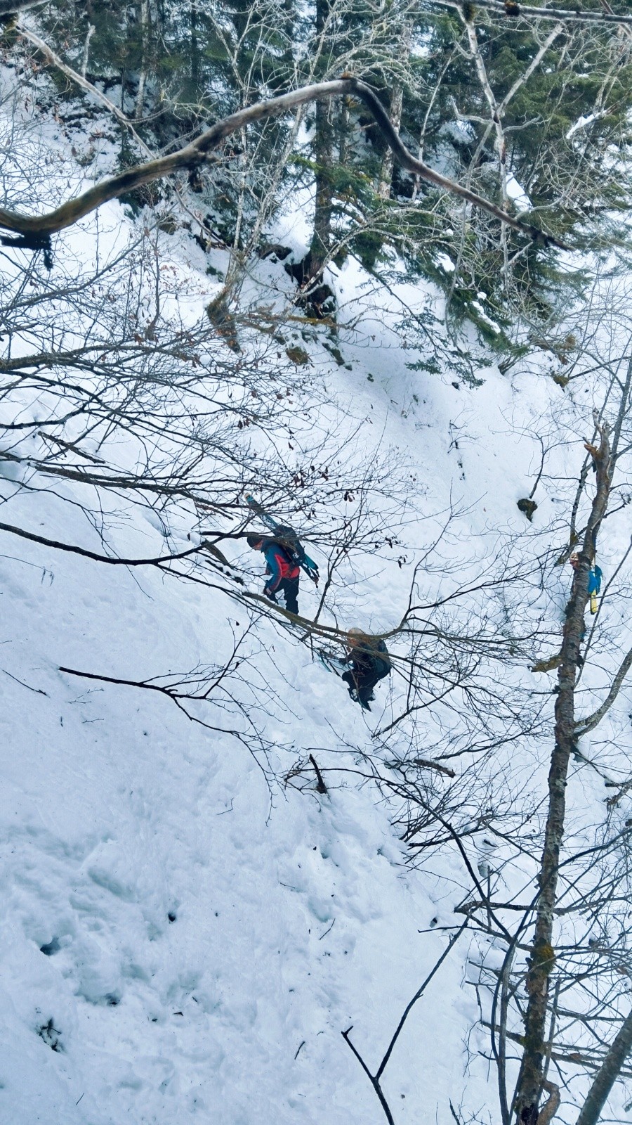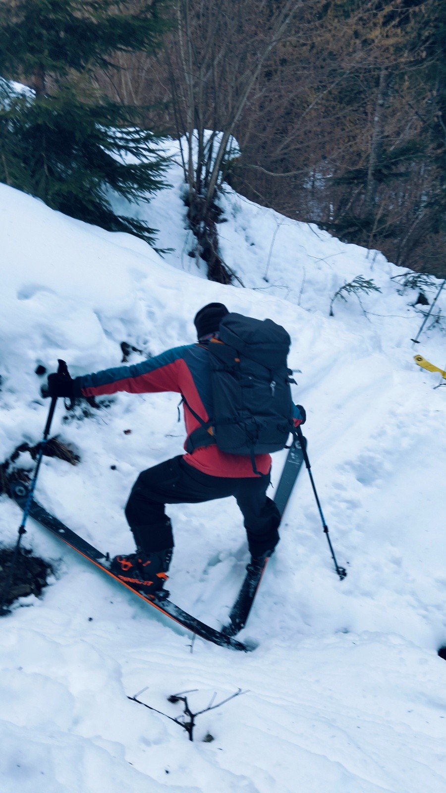Grosse erreur, très vite la piste s'arrête pour un enchaînement de conversions dans des pentes boisées mais raides.
