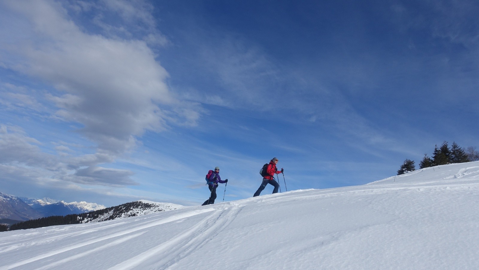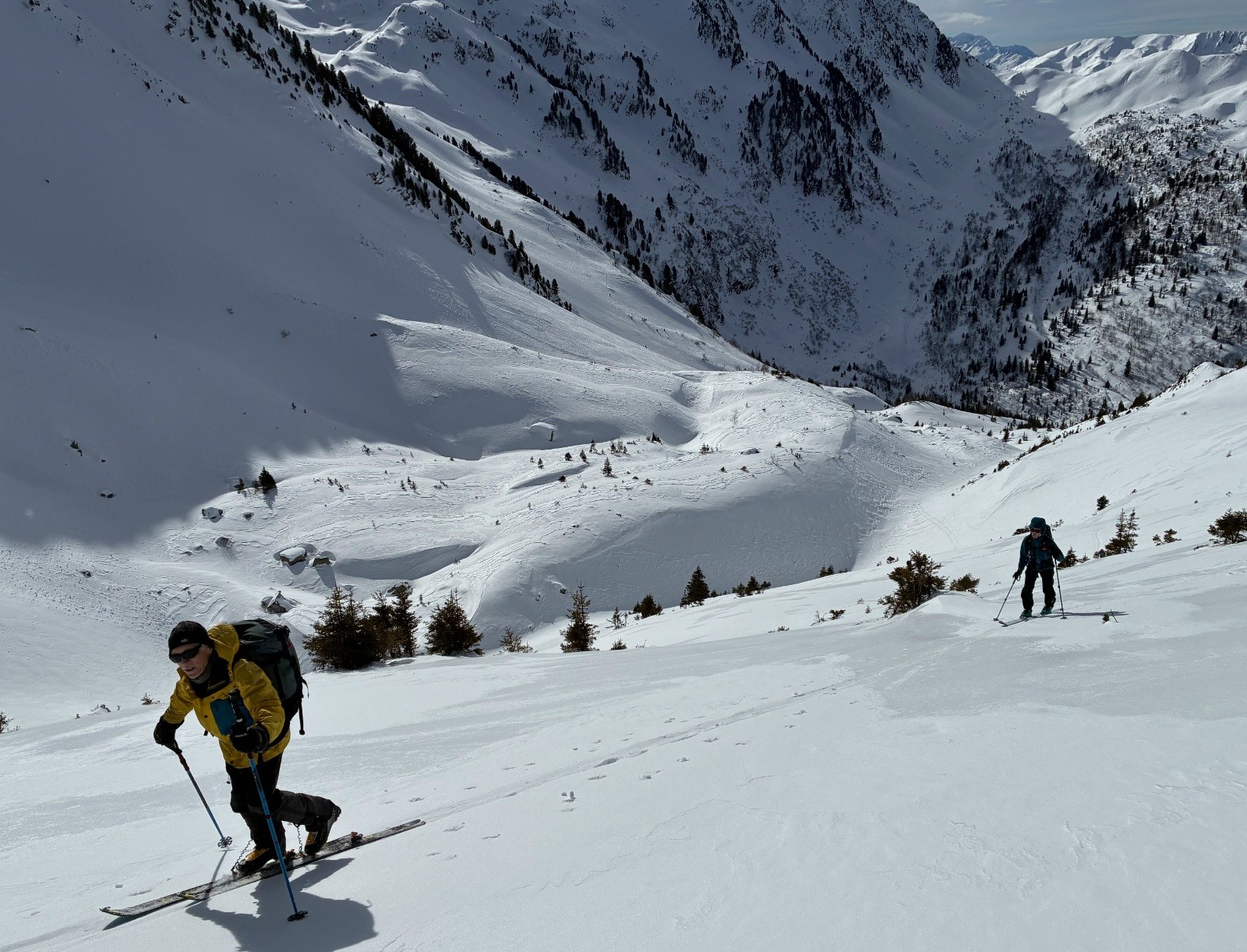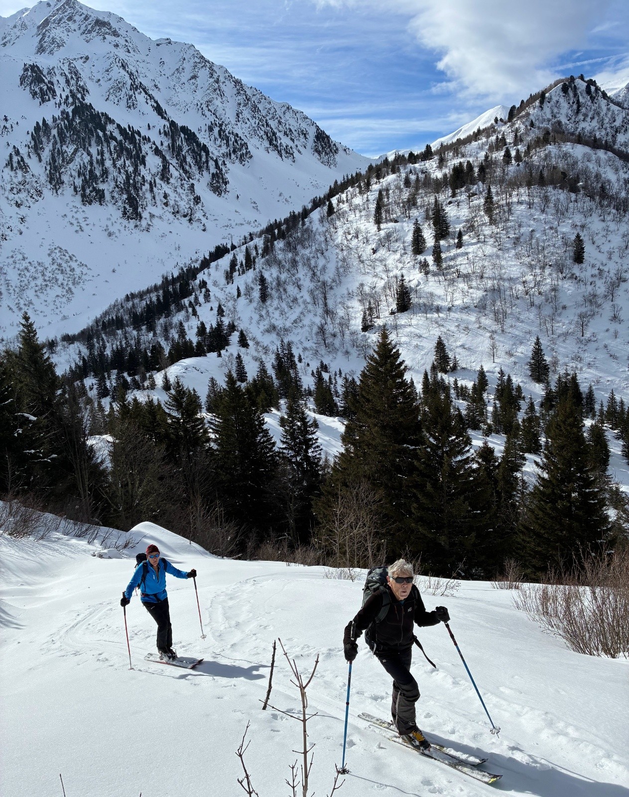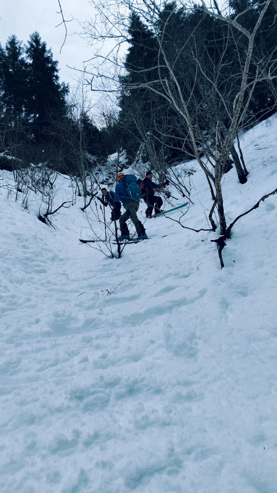 Au départ, premier raccourci inutile sauf pour tester à froid les conversations merdiques en neige dure alors qu'à côté la piste monte tranquille, c'est un choix..