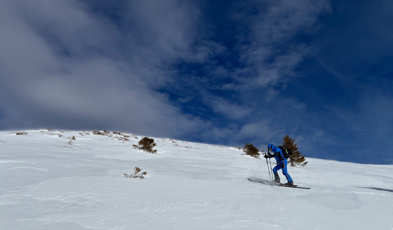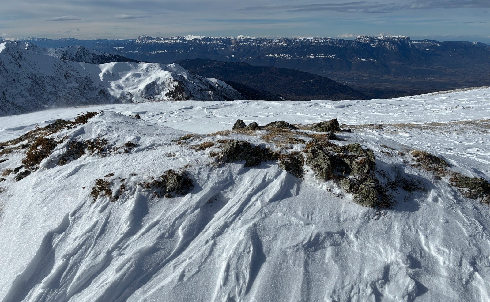 Bon après c'est plus simple, mais le vent est bien présent, neige dure et croutée sous le chapautet.