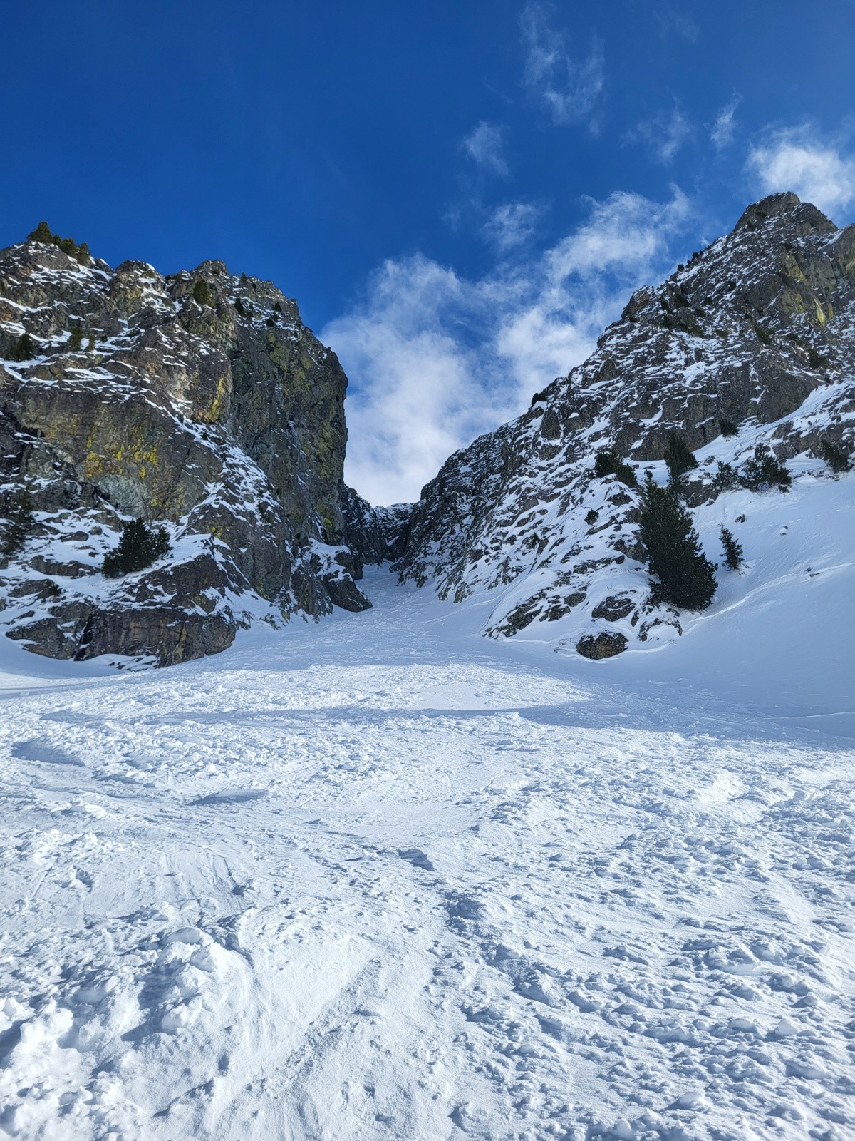 Beaucoup de neige accumulée dans le couloir mais globalemet très stable et bon a skier.