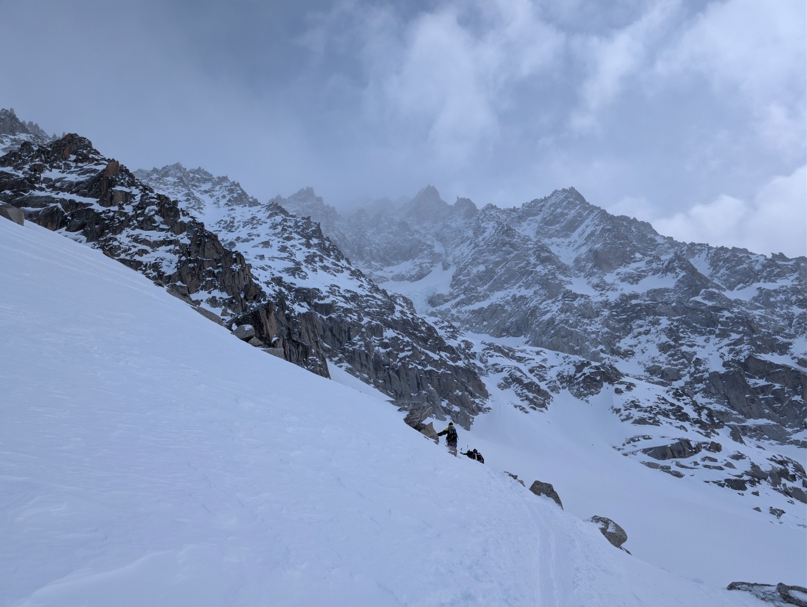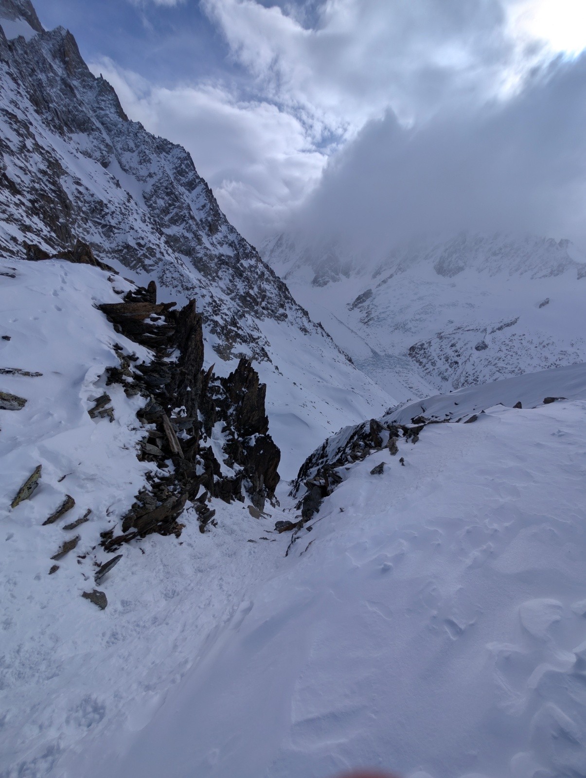 Excellente poudre pour descendre le glacier des rognons, un peu plus travaillée pour longer les rochers sur argentiere.