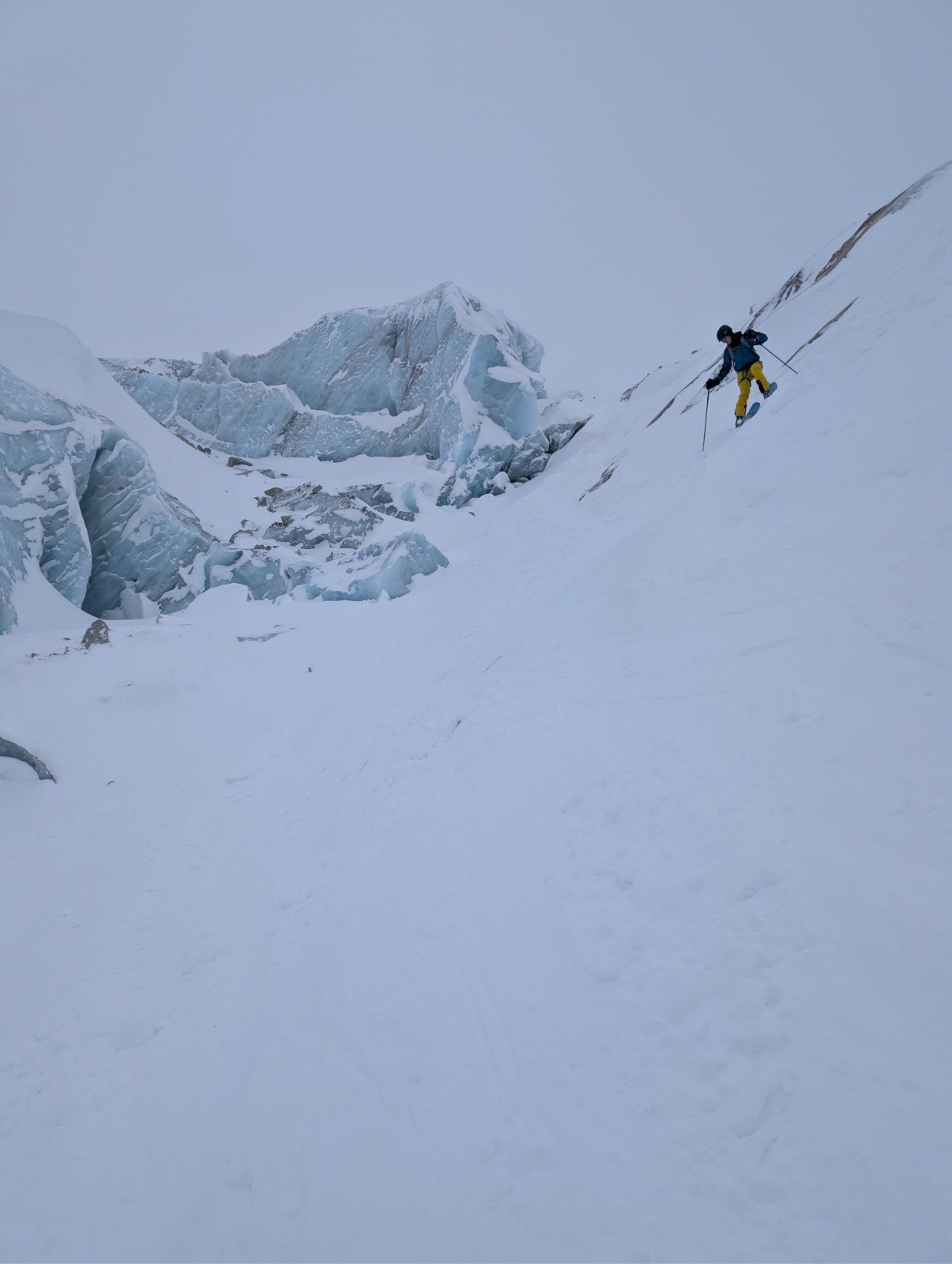 Descente du glacier du tour très sympa sur le début, puis une fois dans les cailloux sous la langue du glacier, la neige devient plus lourde, un peu cartonnée mais largement agréable à skier.