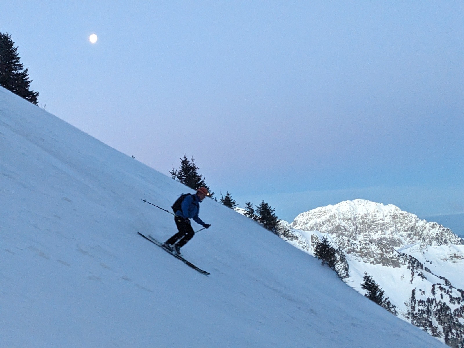 Neige bien dure en bas puis ça s'assouplit doucement avec l'altitude.