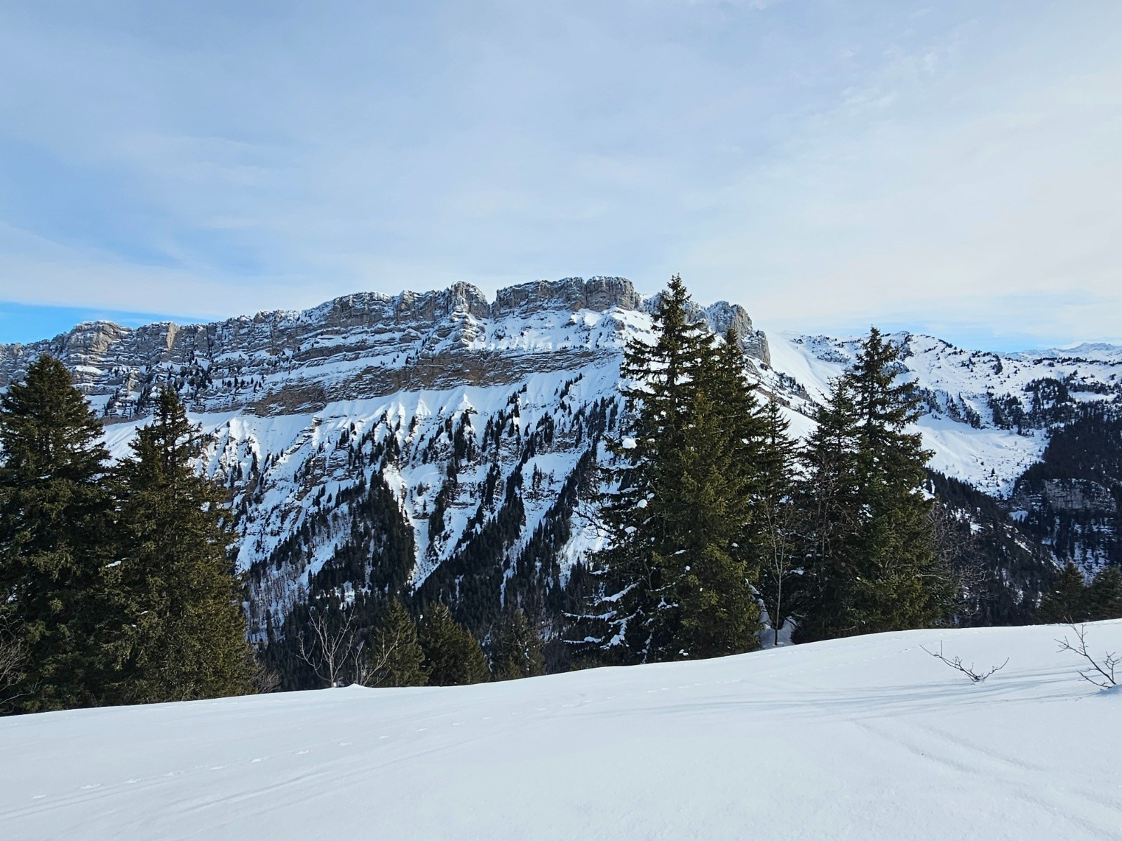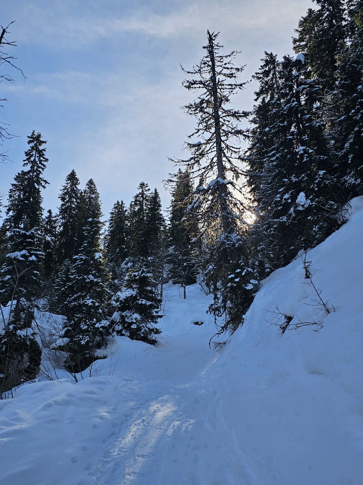 Solitaire faute de gumiste volontaire, je décide de faire une Scia traditionnelle. On était trois au total, dans ce site agréable, aux très belles vues au sommet. On s'attend à croiser un chamois...mais pas aujourd'hui. Les pistes sont désertes et skiables. La couverture neigeuse est correcte tout le temps. J'avais envisagé de partir du bourg de Saint Pierre, mais le portage était yrop contraignant.