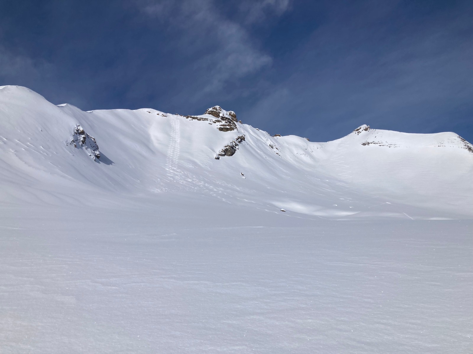 Itinéraire suivi : Topo, montée par la crête tracée, descente par la combe; la Vénasque a été tracée.