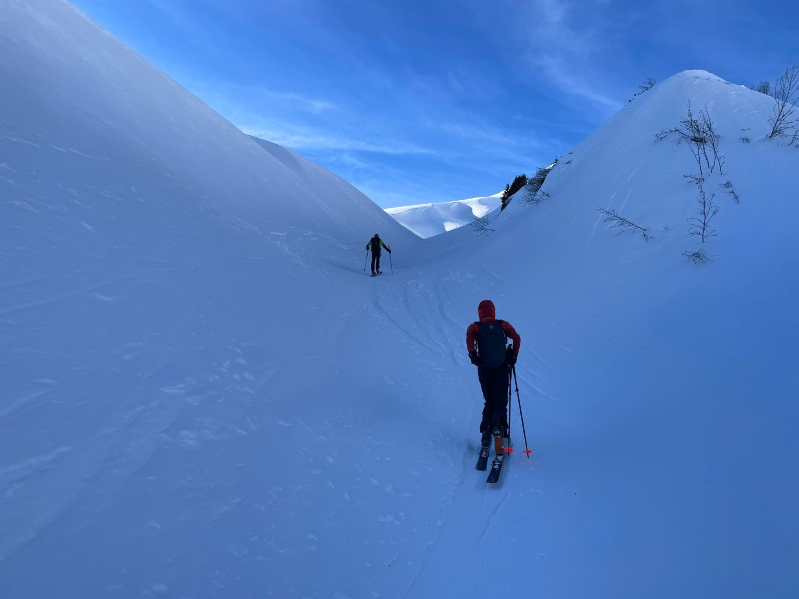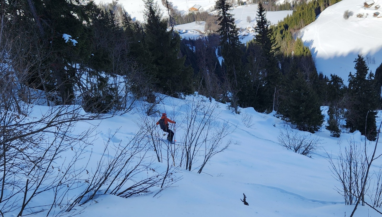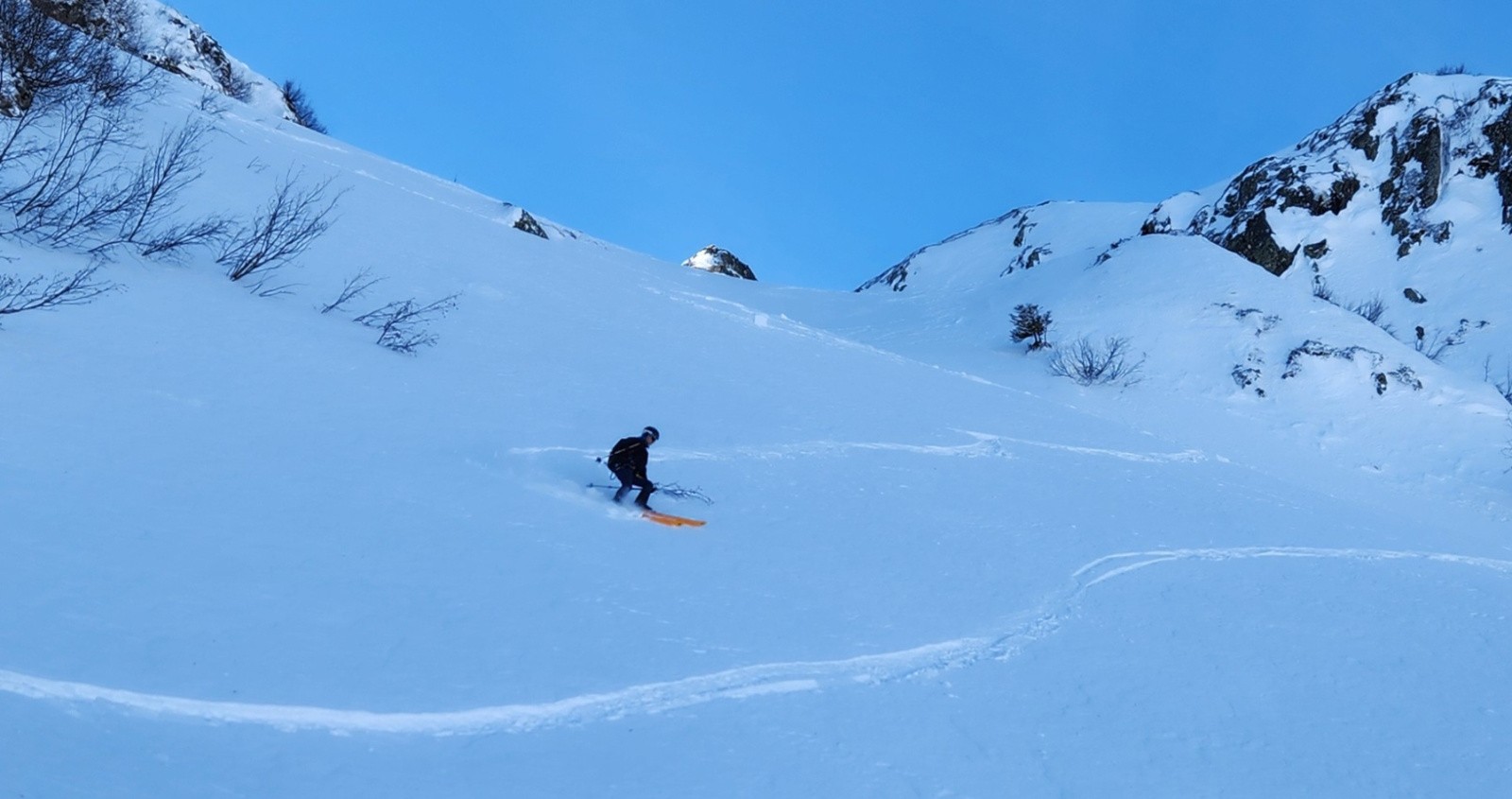 Les jours se suivent et ne se ressemblent pas. Après un début de saison tonitruant entre moquette et poudre jusqu'au narine avec des conditions trop faciles, on commençait à se lasser. Là on reviens aux fondamentaux, on réapprend à skier. On va pas tourner autour du pot ni se la raconter, celle-là ne sera pas la meilleure de l'année. Mais finalement c'est grâce à ce genre de sortie qu'on apprécie d'autant mieux les autres. Sur le bas, une partie dans les arcostes en neige très légère sauvera un peu la descente.