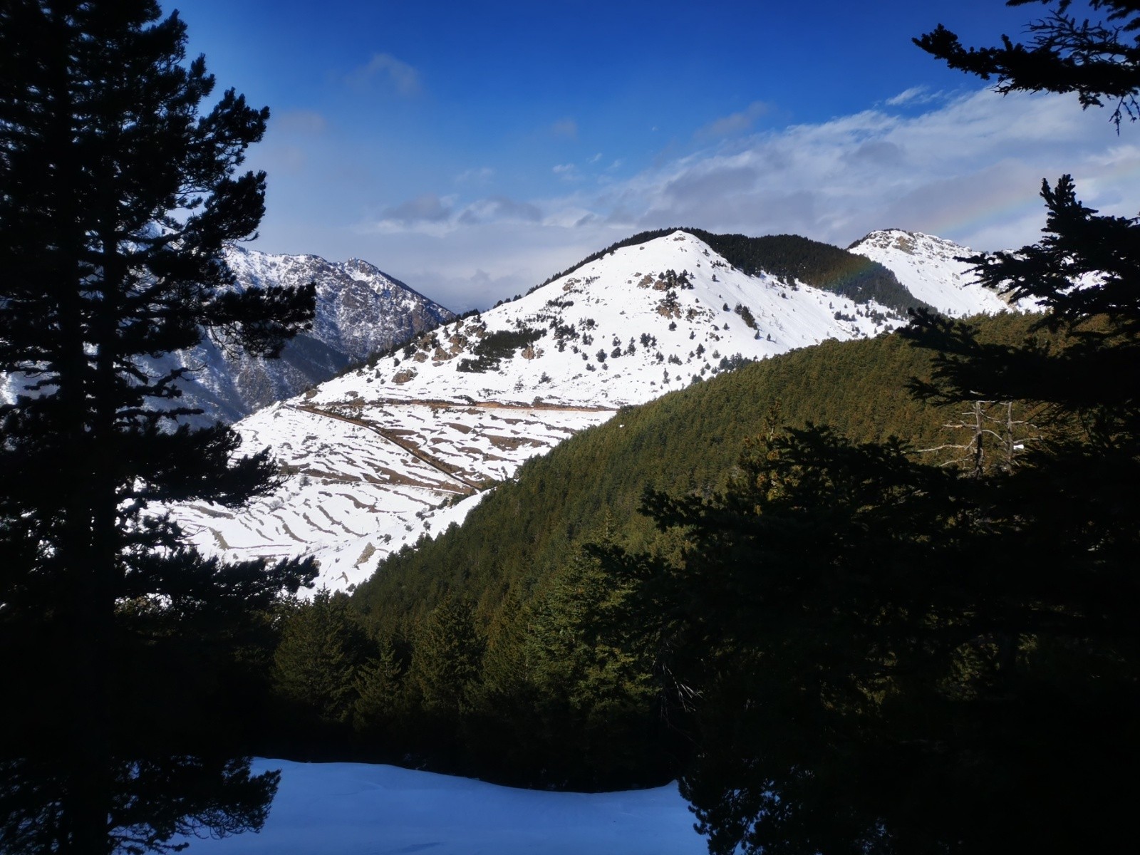 Beaucoup de faune dans la forèt: isard, lièvre, écureuil, tous aux abris du vent je suppose.