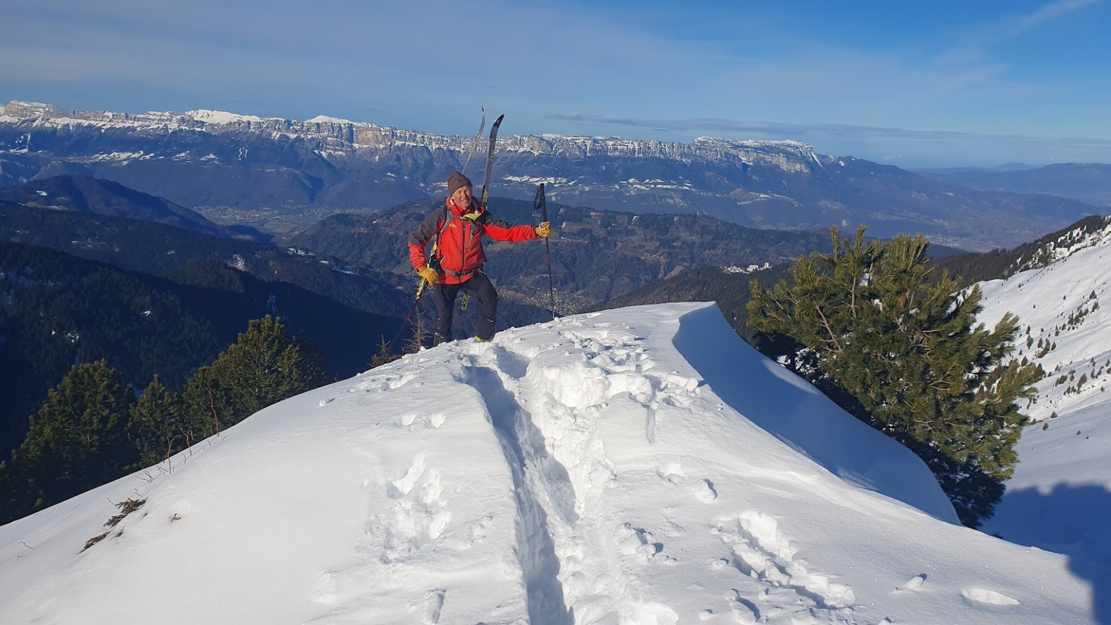 Itinéraire suivi : par les pistes jusqu'aux crêtes des Plagnes, descente au Col Claran, montée au petit Charnier par l'arrête W à pieds, descente combe N/E jusqu'à 1700m , traversée sur sentier d'été jusqu'au refuge de Claran puis retour aux Crêtes des Plagnes par une croupe côté W du refuge, retour station par les pistes