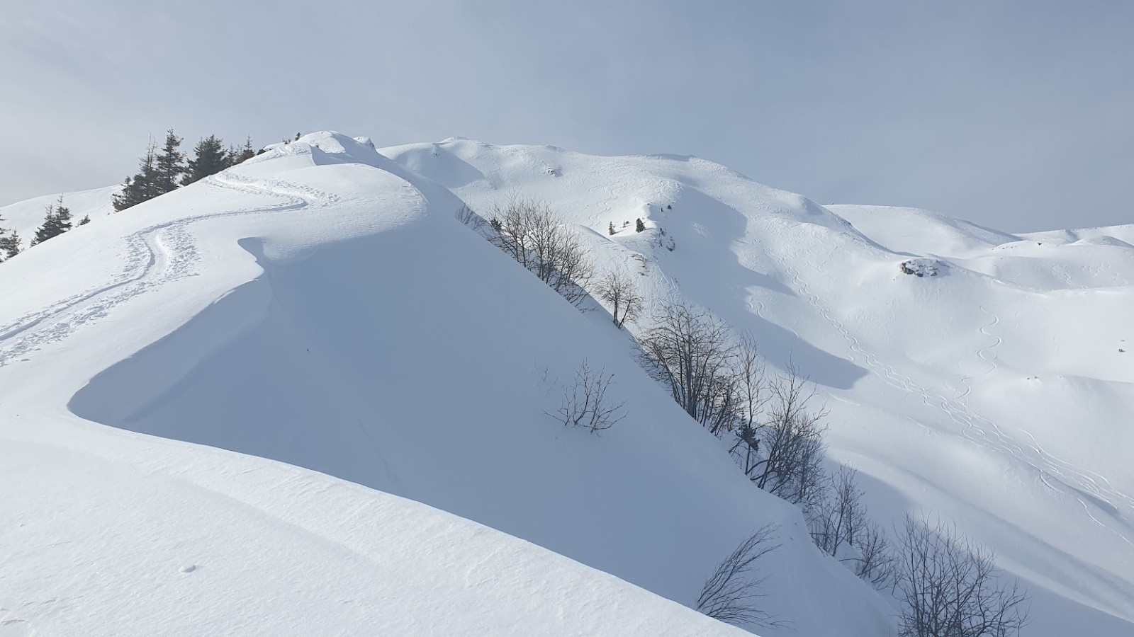 Conditions pour le ski : très bonnes , poudre dans la combe N/E