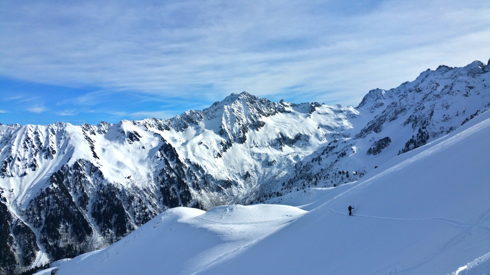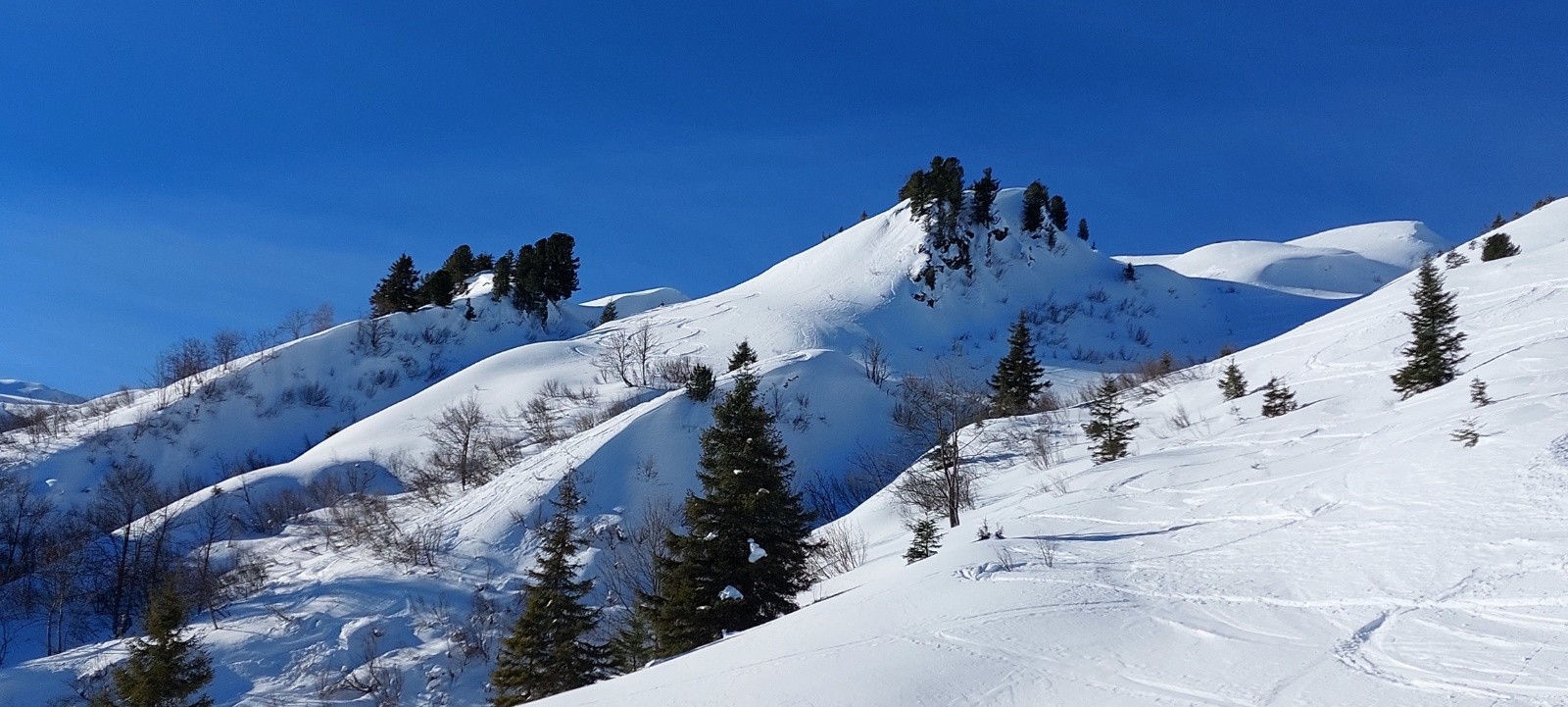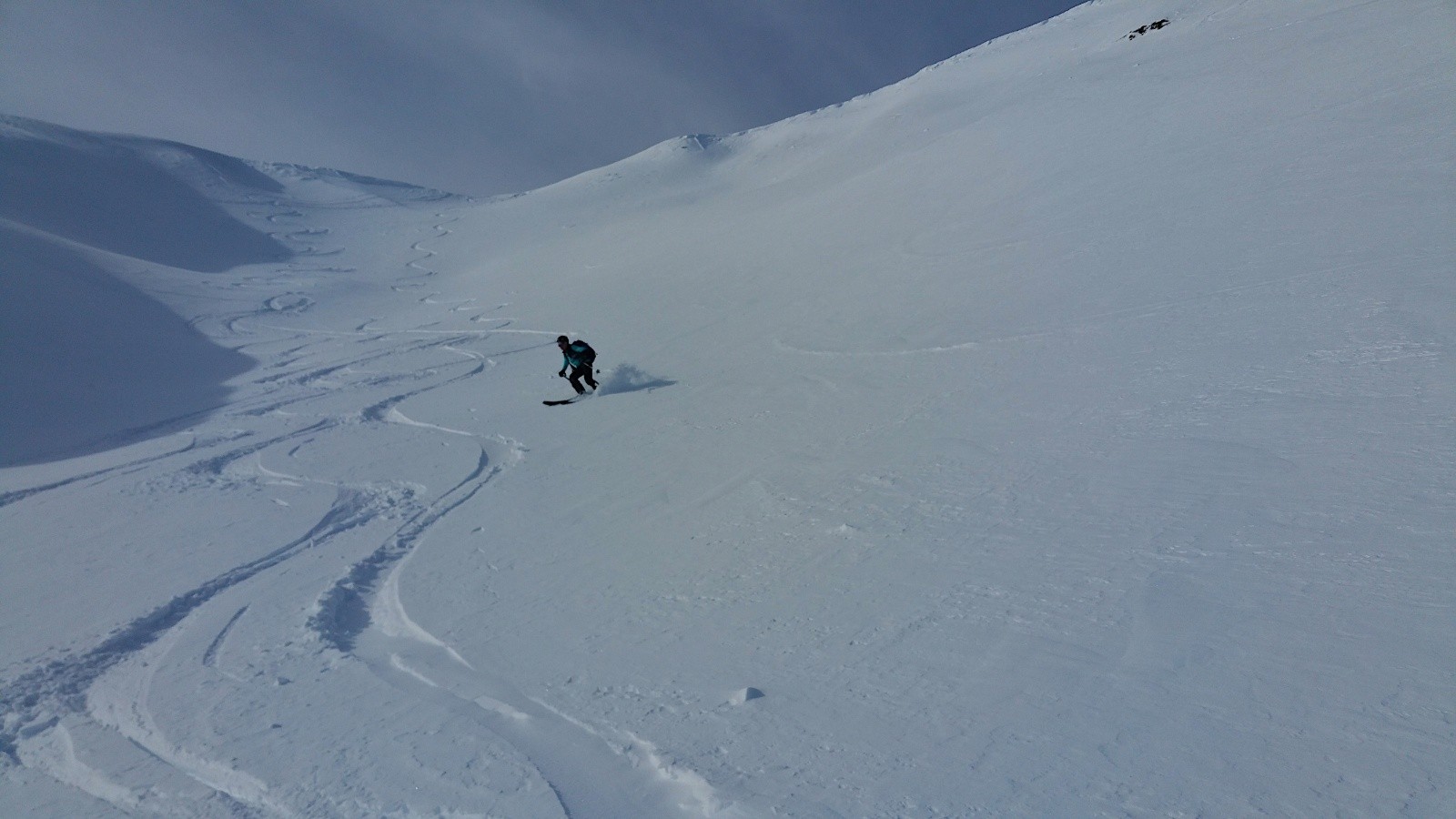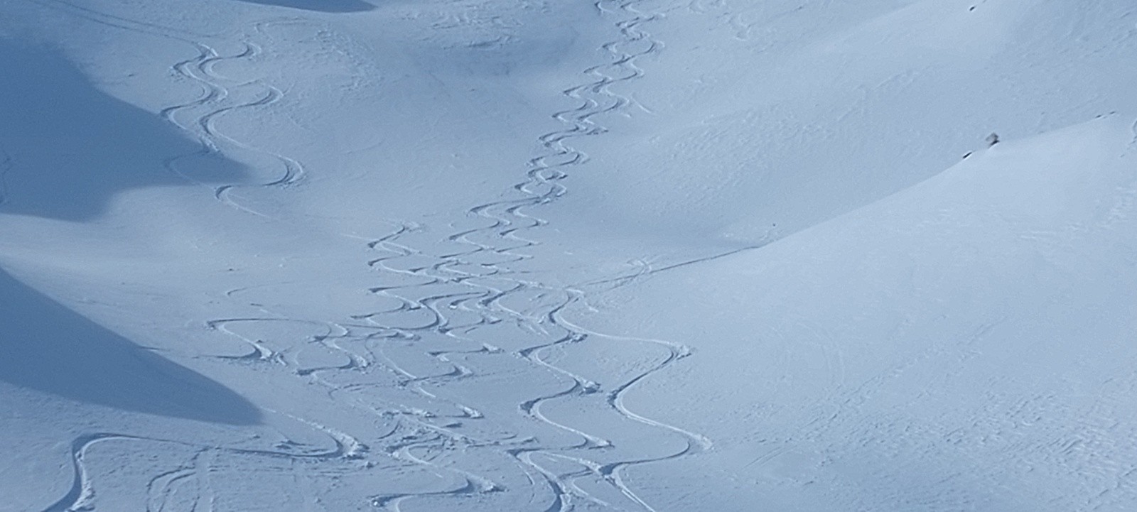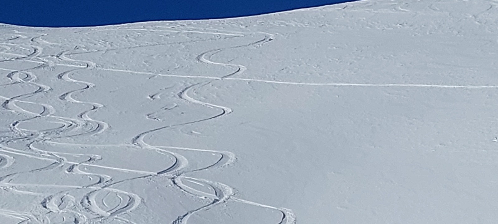 Conditions pour le ski : neige extra, en poudreuse inespérée - avec de courts passages légèrement irréguliers et aussi des zones 5* ! Et les pistes en neige souple gouleyante.