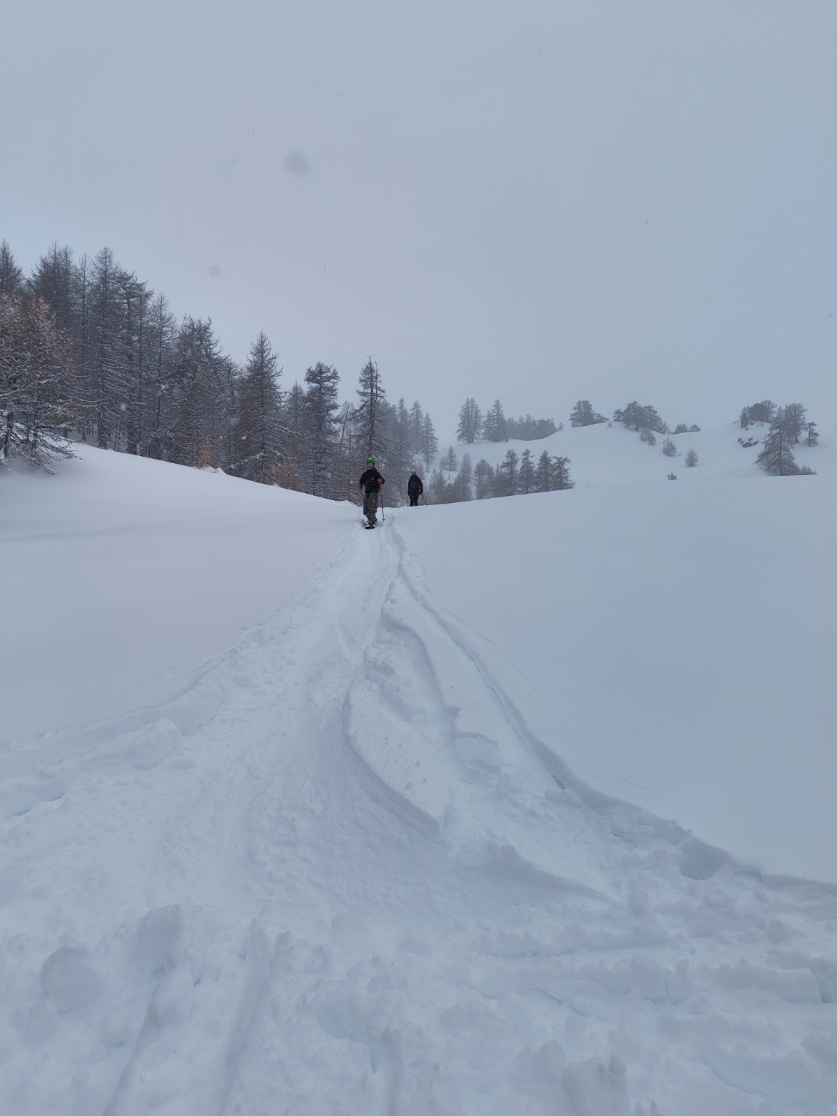 Conditions pour le ski : Une belle poudreuse encore bien fraîche dans les sapins, bien souffler dans les hauteurs
