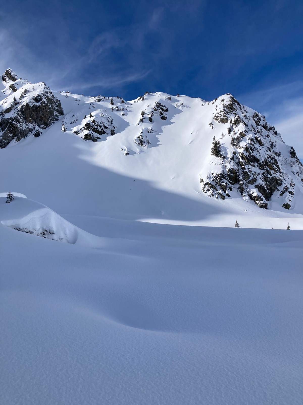 Conditions pour le ski : Très bonnes dans le Pas de la Coche et le cirque Nord du Sifflet ; le border passe encore bien, mais la neige est dure et quelques plaques de glaces commencent à apparaître