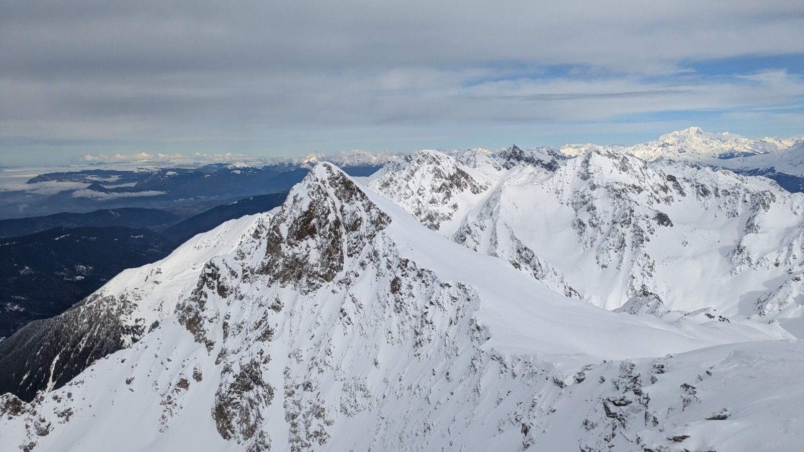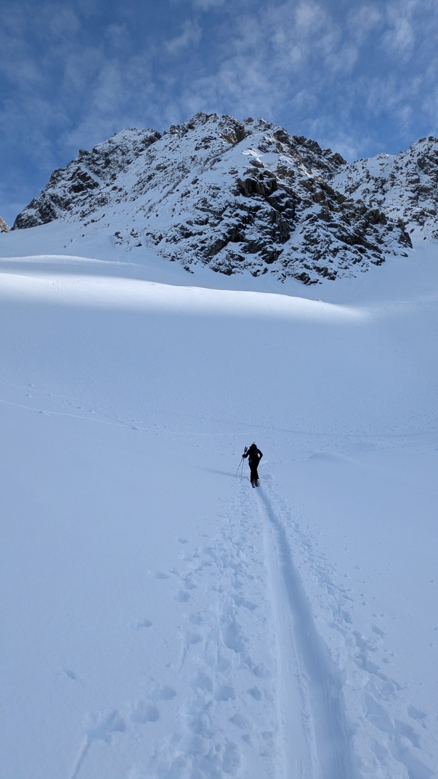 Comme pas mal de monde aujourd'hui on a l'idée d'aller chercher la poudreuse au rocher blanc. Petit bonus vers le col de la combe madame, globalement du super ski jusqu'à 1900m (+/- 20cm de poudreuse récente). Toujours aussi beau ce coin