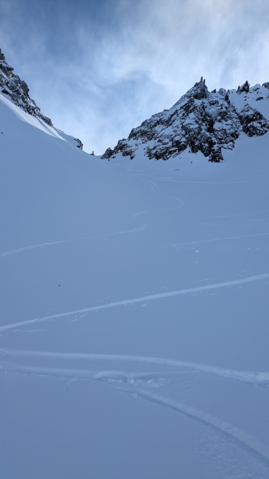 Conditions nivo et activité avalancheuse : ras sur l'itinéraire, quelques traces de coulée dans les faces raides