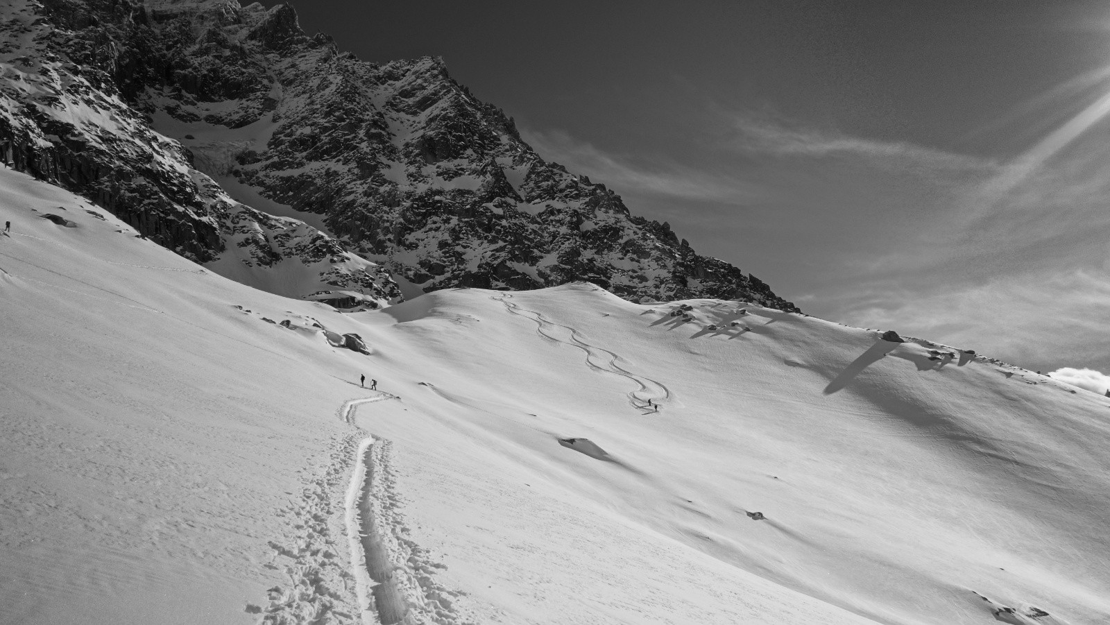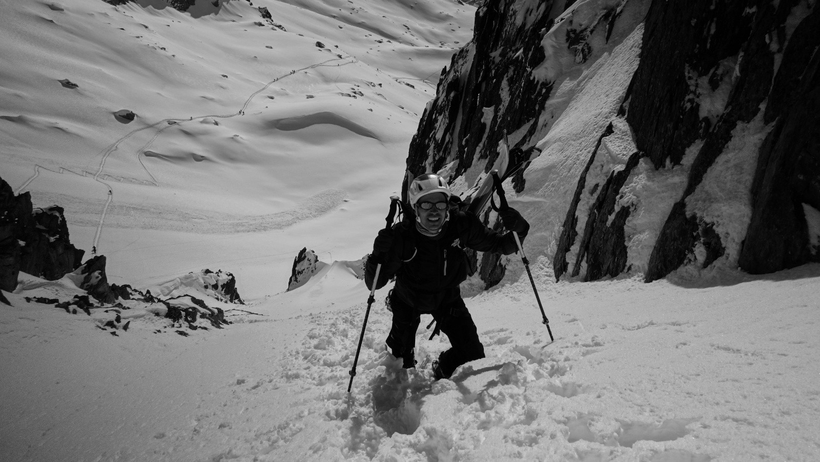 Conditions pour le ski : Bonnes / Départ frileux du parking jusqu'à la moraine ou l'on trouve le soleil une descente sur le glacier en neige top. ON remonte sans encombre trace parfaite puis on se prend un vent avec Hillary Gérardi très sympa qui nous accepte la photo au sommet du Passon. Descente vers le tour toujours aussi bonne seulement 6 traces devant nous sur l'ensemble de la descente.