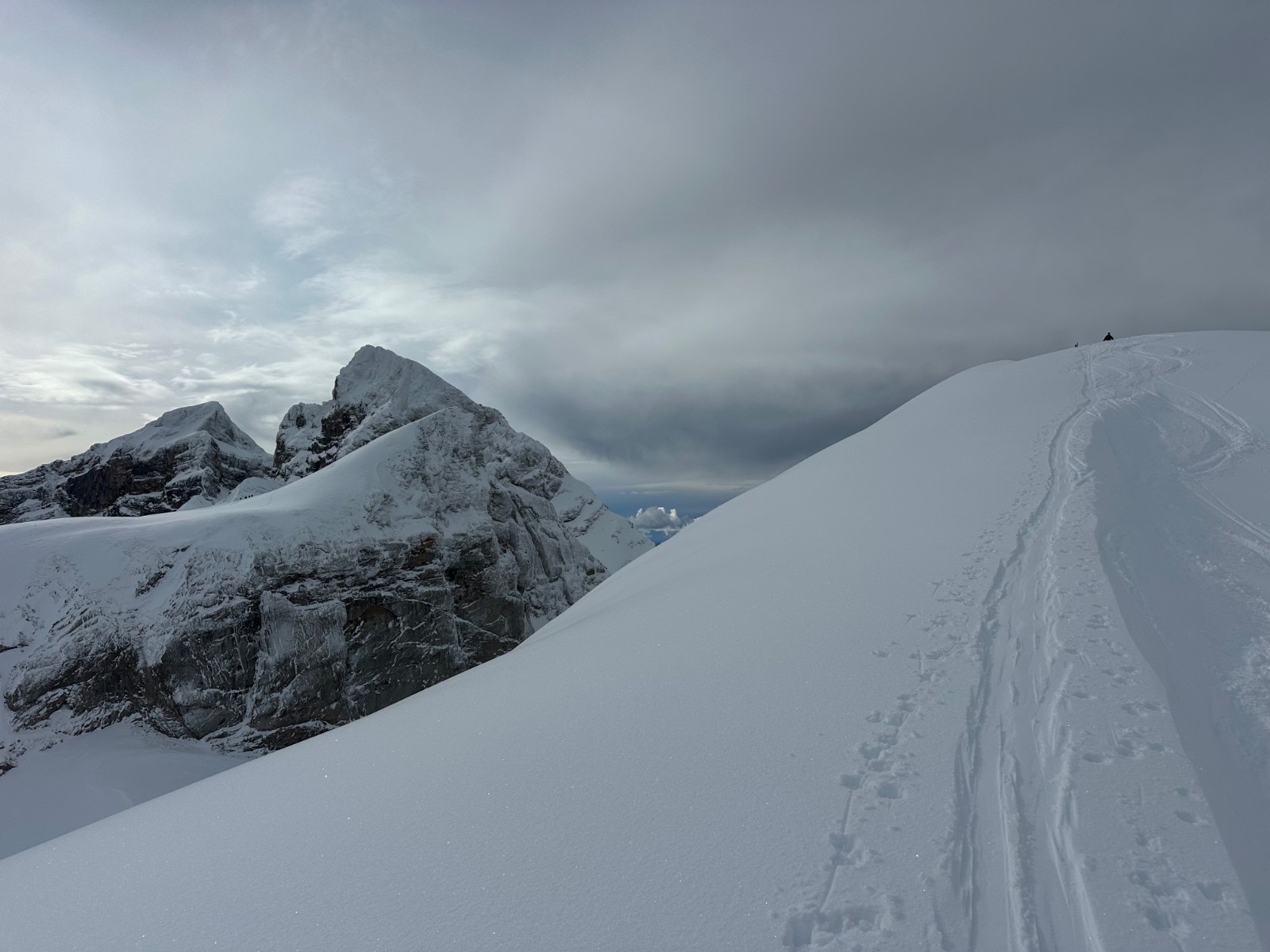 Conditions pour le ski : poudre en haut dans le Serre long entre 1850 et 2139 m. Croute exigeante partout ailleurs sauf en bas, où on a trouvé de la neige dure ( entre 1650 et 1400).