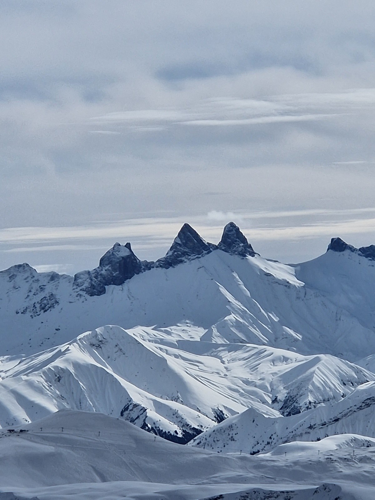 Conditions pour le ski : Belle poudre au dessus de 1800m ,excellente en versant W de la Valloire, légèrement cartonnée en E.
