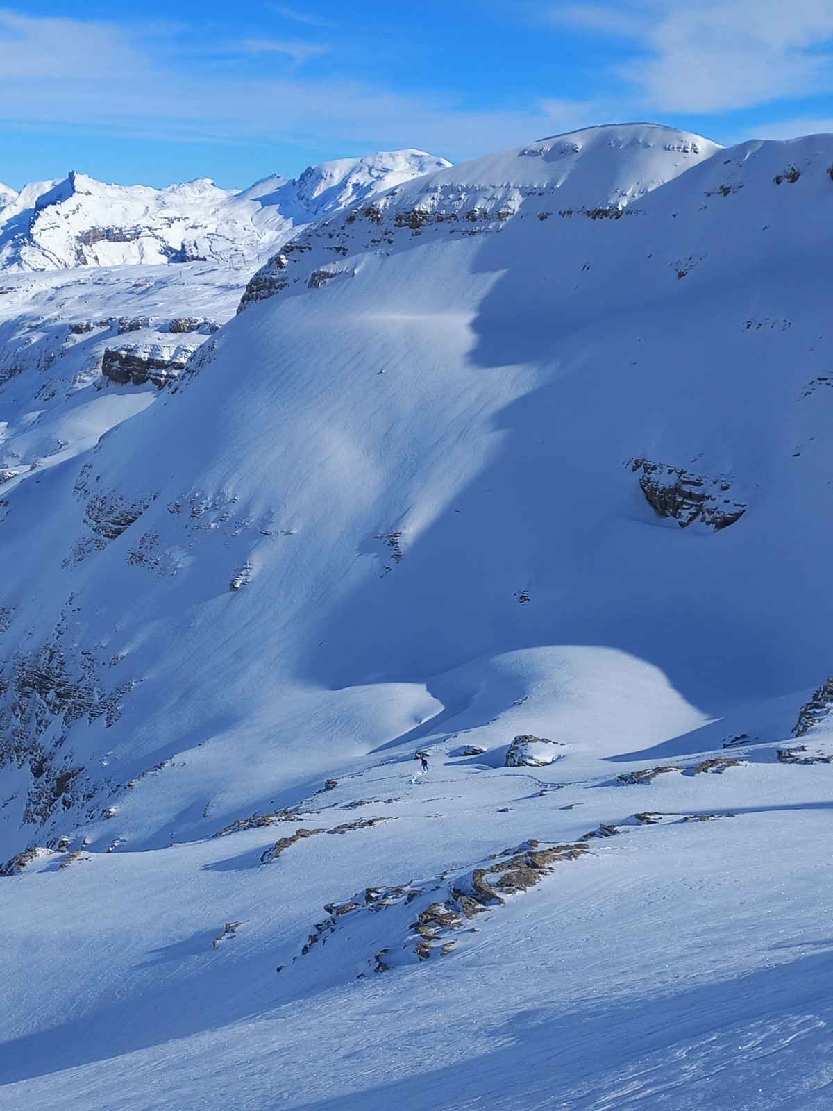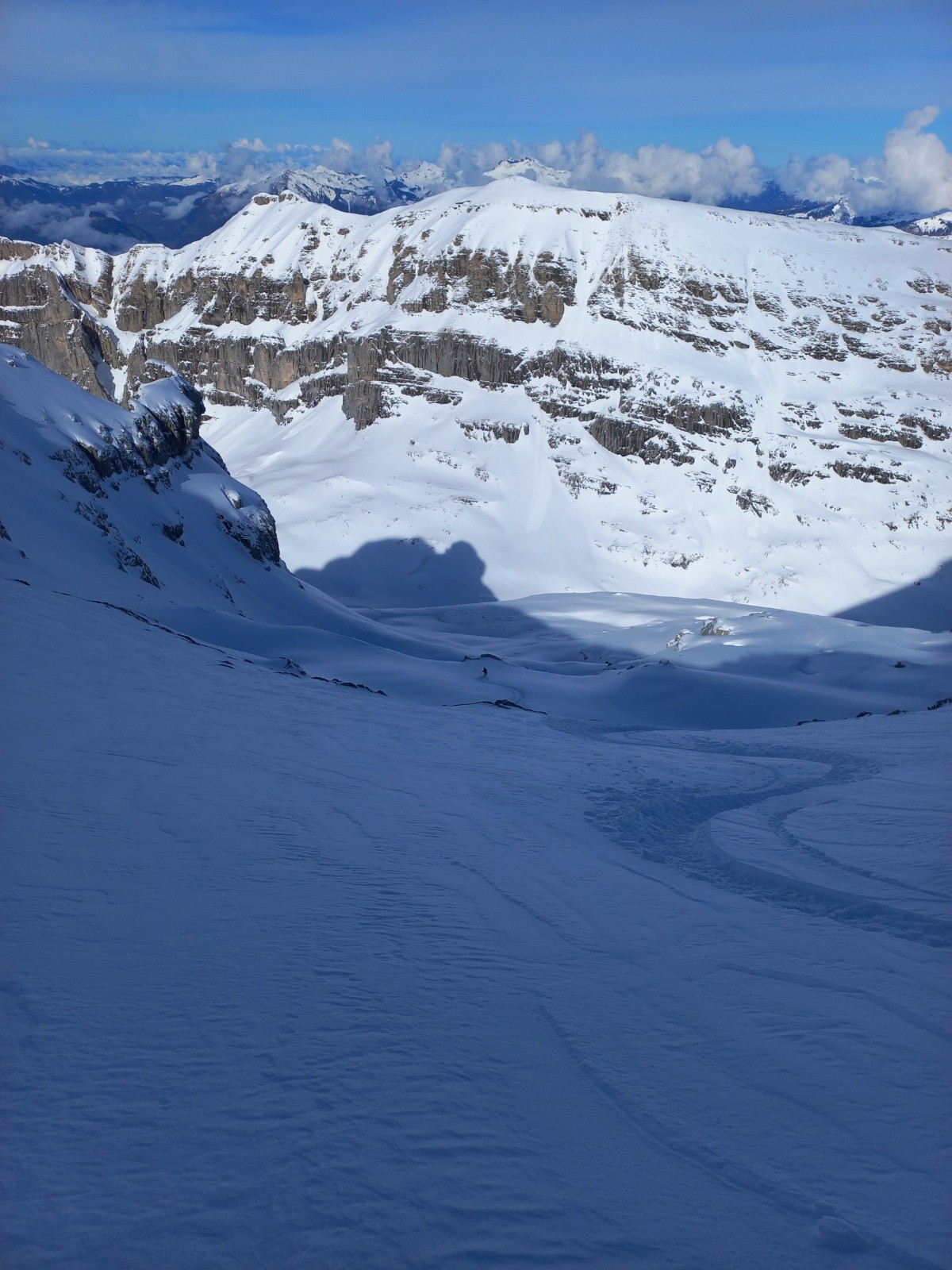 Conditions nivo et activité avalancheuse : tout vierge, on s est laissé de l espace avec guiguu à la montée, quelques petites plaques se sont dessinées dans les conversions sous la partie un peu raide sous le colonney, mais rien n est descendu.