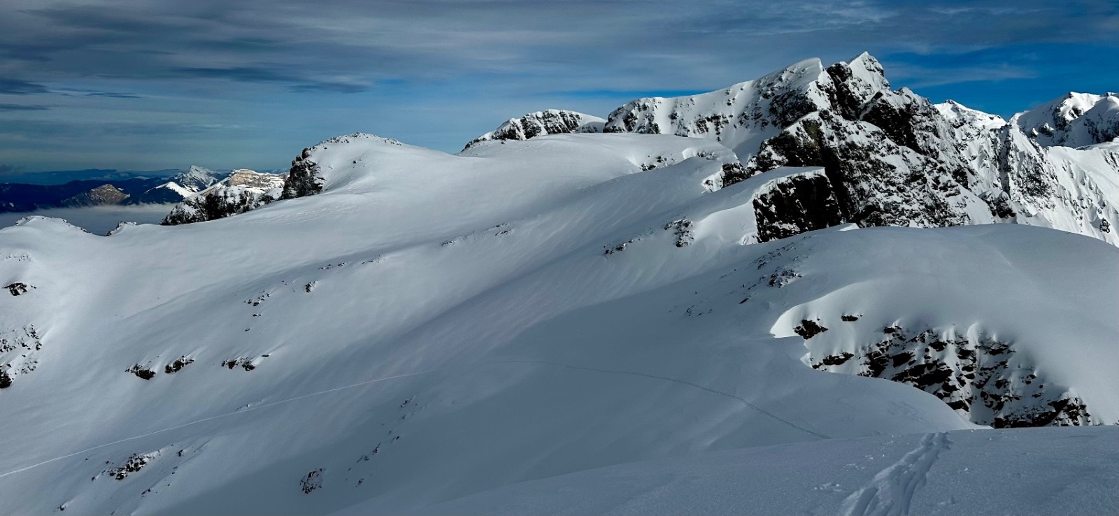 Conditions pour le ski : poudre légèrement densifiée/tassée par le travail du vent