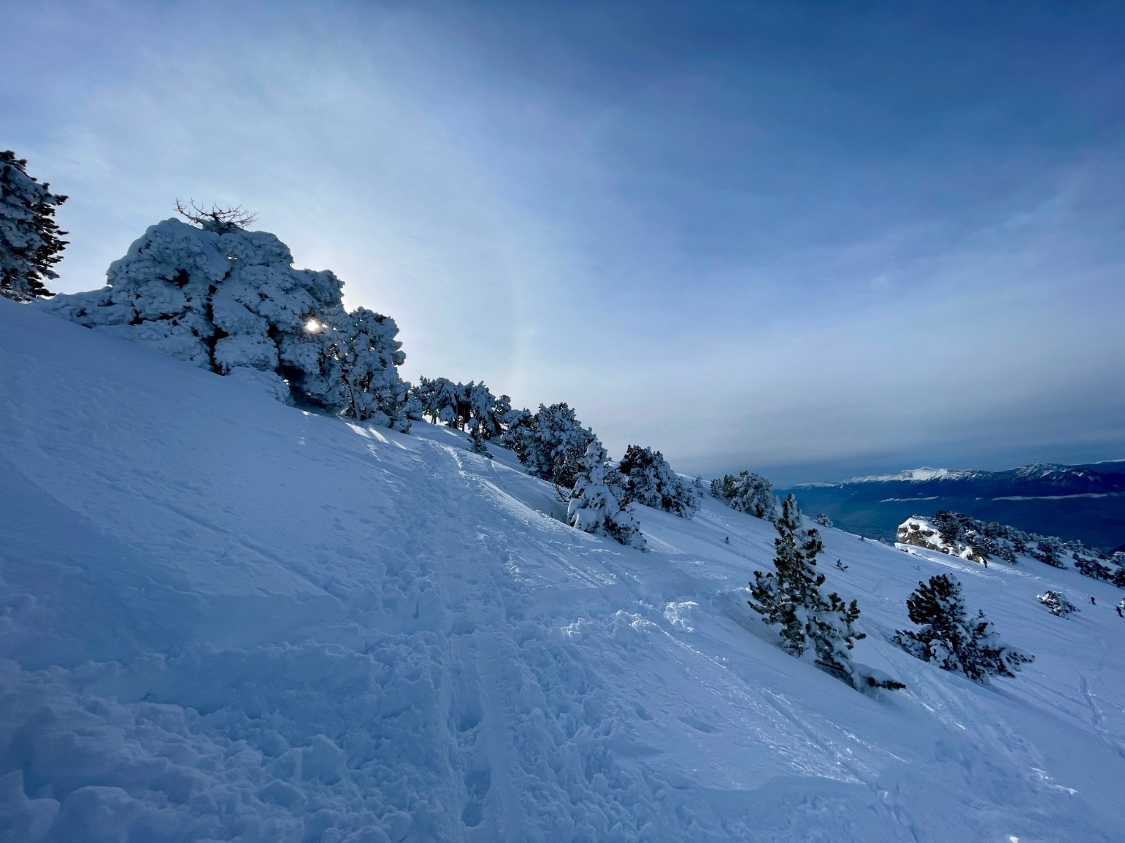 Petite remarque la mention « non adapté au débutant » sur le topo est largement mérité la neige était dure mais pas béton et se fut bien physique quand même. Depuis le début d’année je croise beaucoup de débutant qui maîtrise très peu leur ski montée et descente qui doivent à peine savoir skier sur une petite rouge en station, pas l’aise avec leur matériel ou ne le connaissent pas des gens sans ski sans raquette ni crampons à pied en simple botte de neige ou encore d’innombrable personne sans casque c’est à se demande comment il y a pas plus d’accidents. A force de faire n’importe quoi sa va finir par être interdit 😞