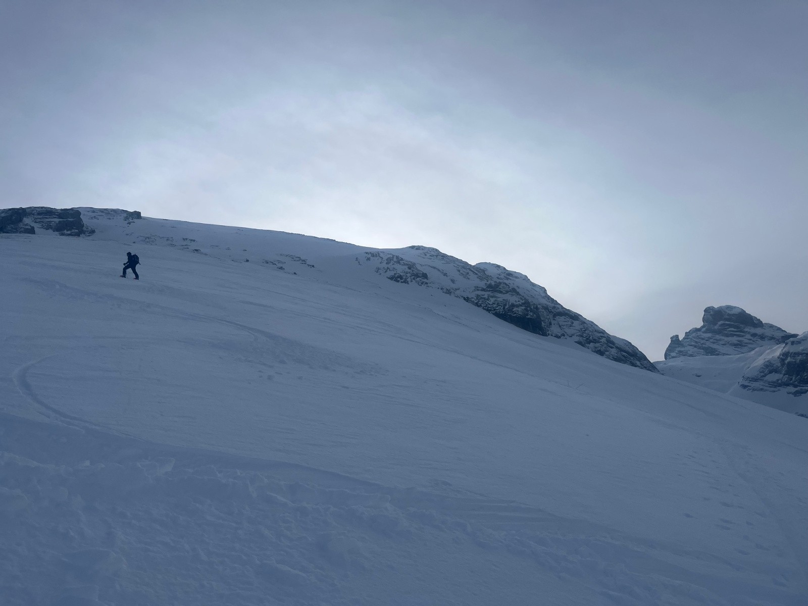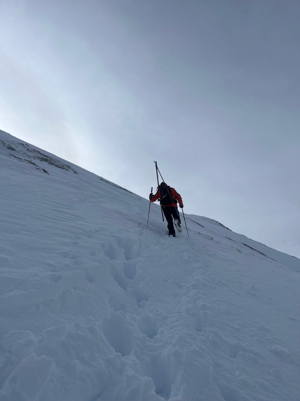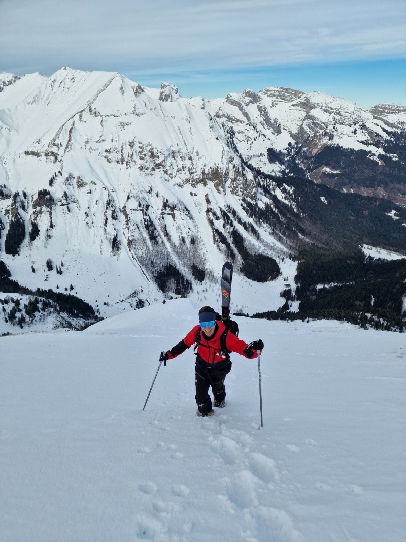 La face se monte bien à ski jusqu'à ce qu'elle se redresse, après il faut les crampons, la sous-couche est dure