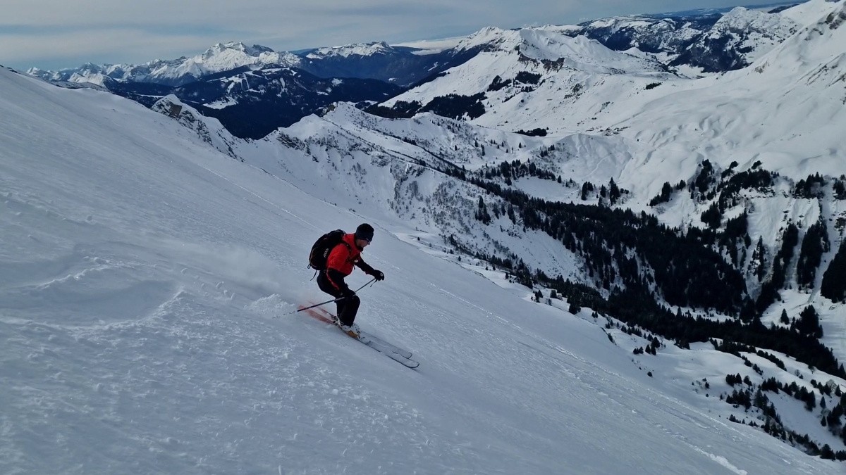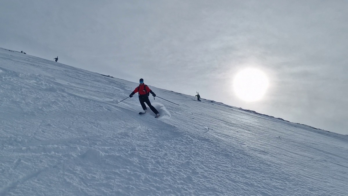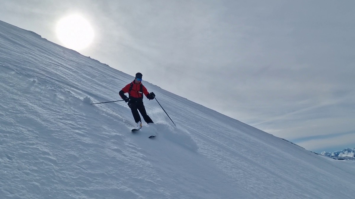 Conditions pour le ski : Tres bonnes conditions pour toute la face, environ 20/30 de poudre posé sur sous couche dure. En haut, très peu de neige, les cailloux sont rapidement là