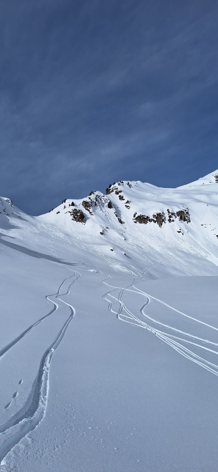 - Descente Marmottes Noires en poudre humidifiée sur les 50 premiers mètres et ensuite poudre paillette de rêve.