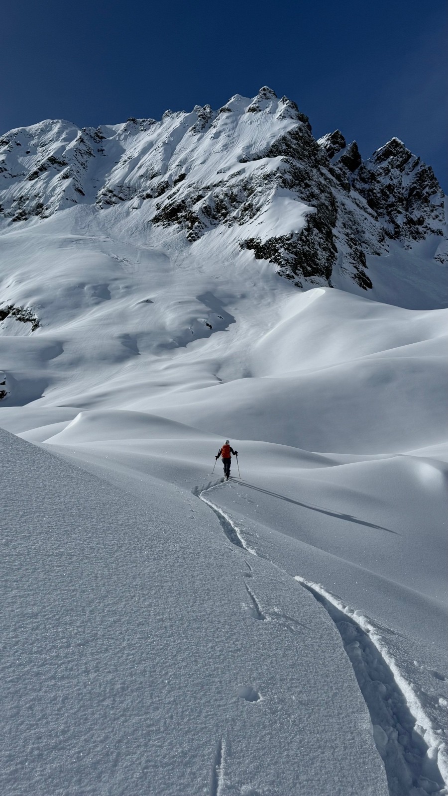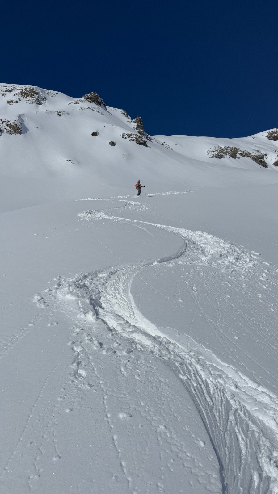 Itinéraire suivi : freydieres, épaule de la Lauzière, petite combe qui va bien, sommet, et combe au soleil en S et E, excellente ! La W avait aussi l’air bonne mais on a préféré le soleil et la solitude !