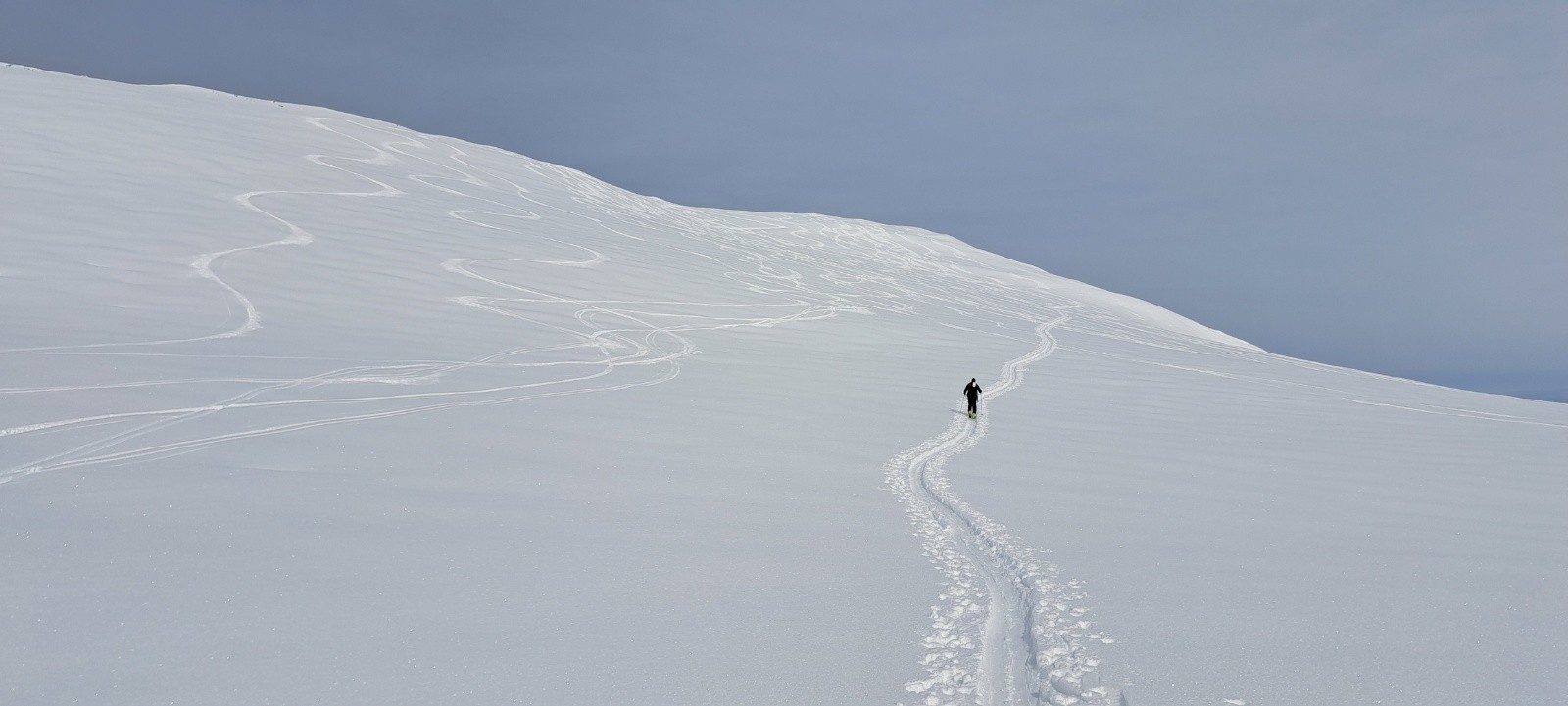 La météo est bien meilleure que ce qui était annoncé. Et temps mieux. Cela a permis à la petite croûte de regel de s' attendrir et de permettre un bon ski de haut en bas. Dorian s'est régalé avec ses télémark.