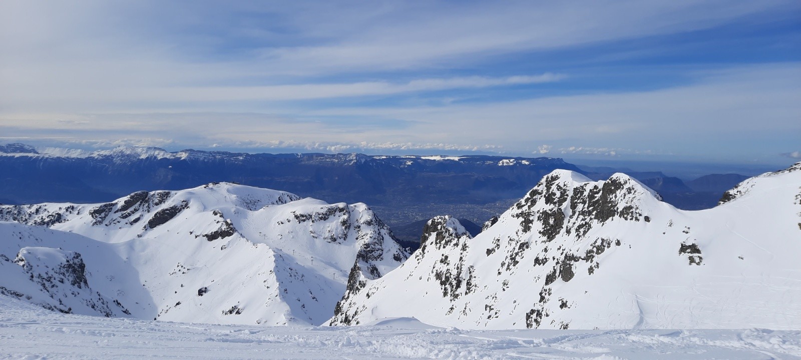 Conditions pour le ski : 10 cm de neige encore poudreuse sur un fond dur, très agréable.